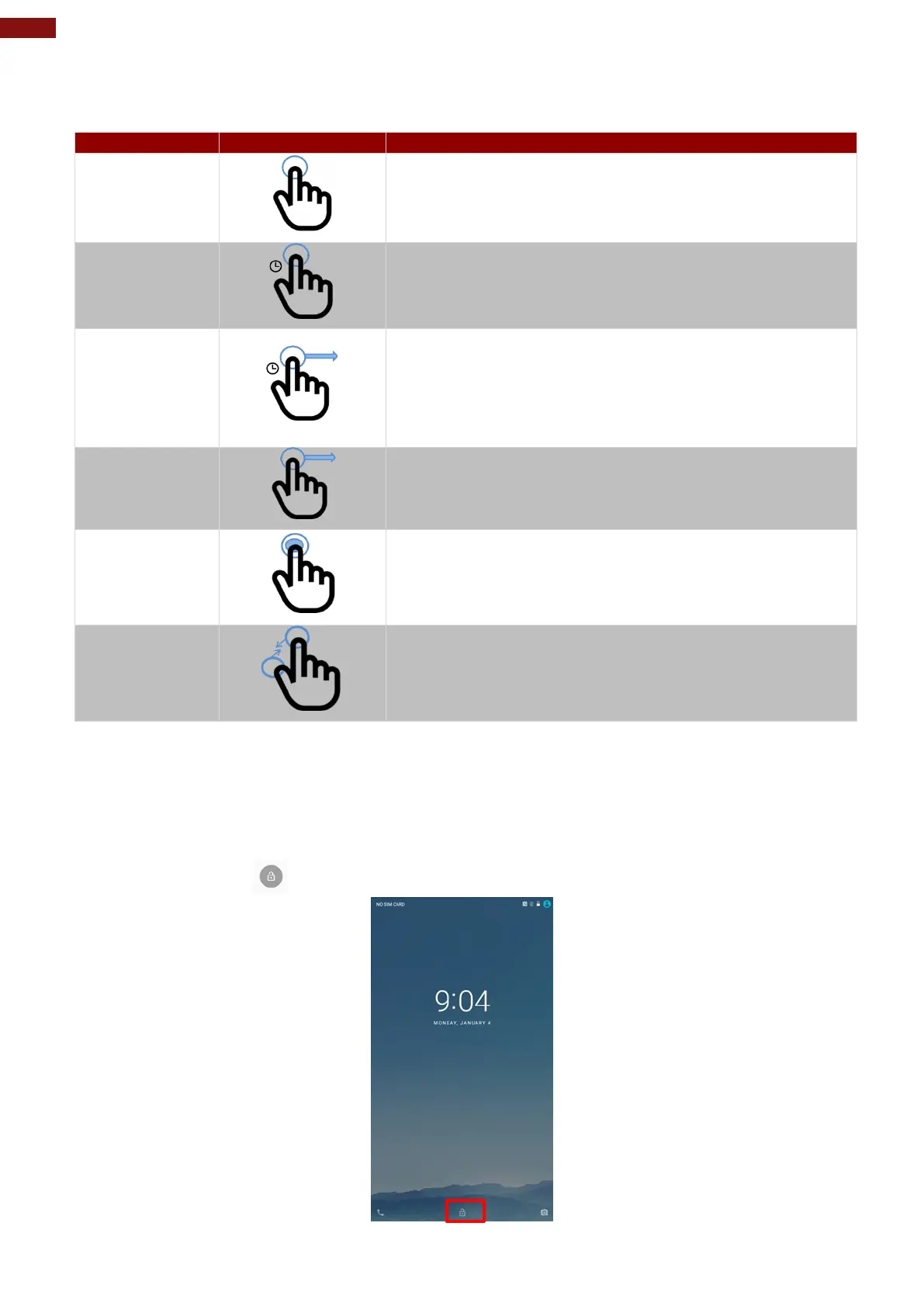 The touchscreen supports the core gestures for Android.