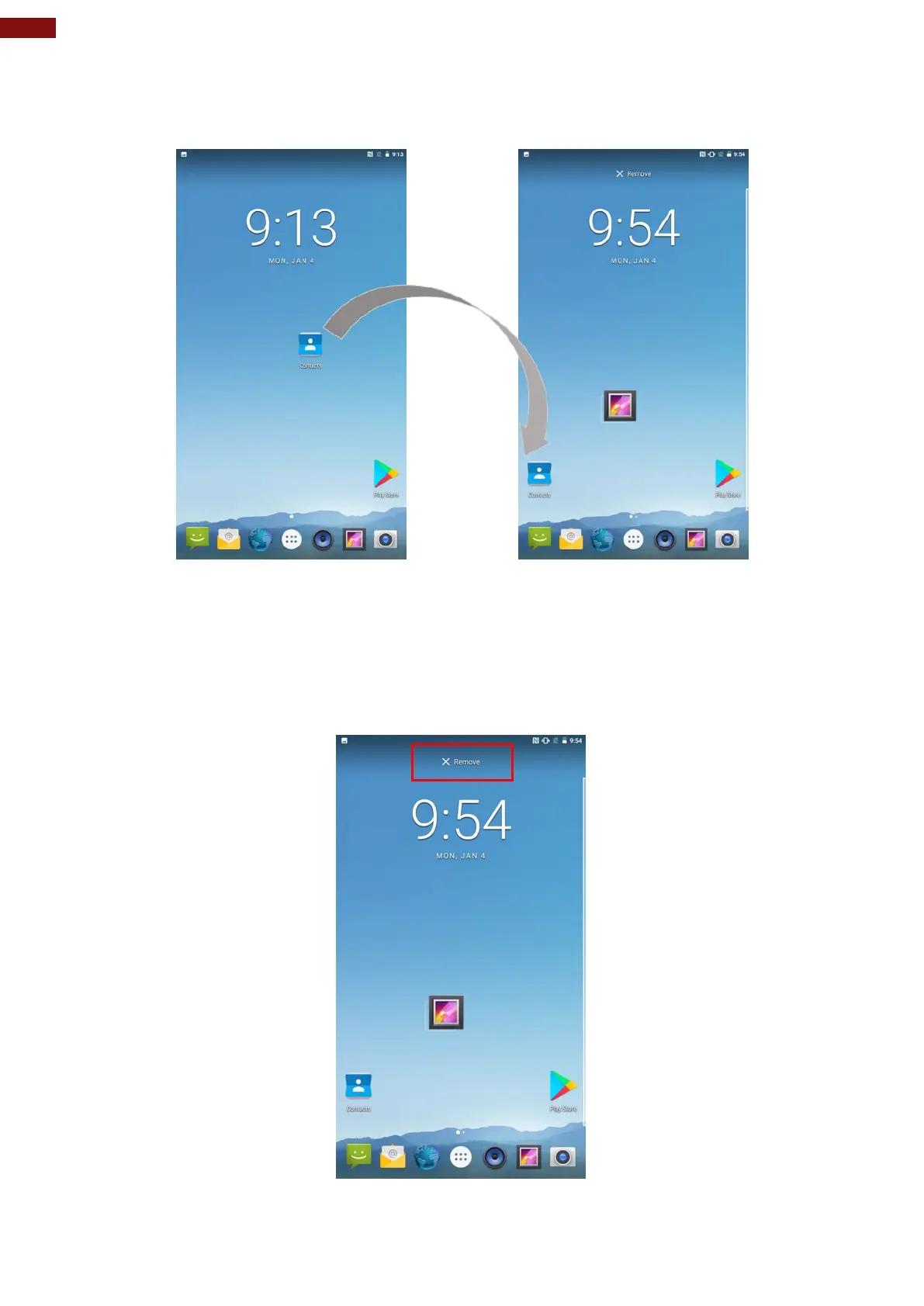 1. Tap and hold the item you want to remove. The launcher icon will show Remove on the top of the