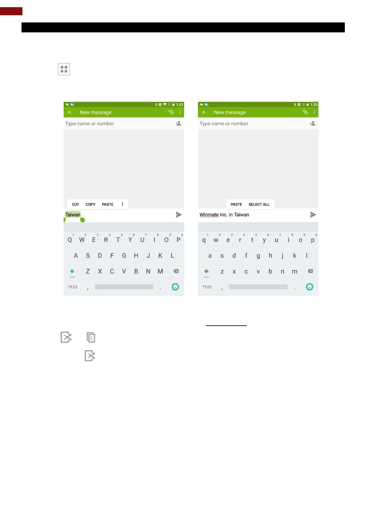 1. Select the text to cut or copy, see the section above āTo select textā.