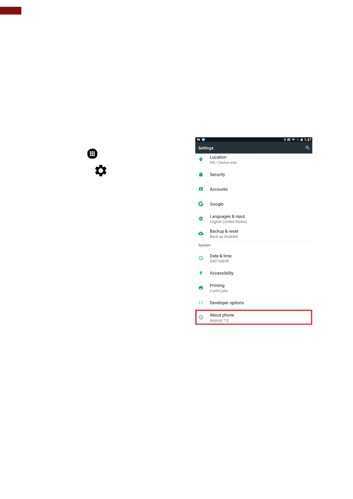 • Legal Information — lists details about the model number, Android Version, Baseband version