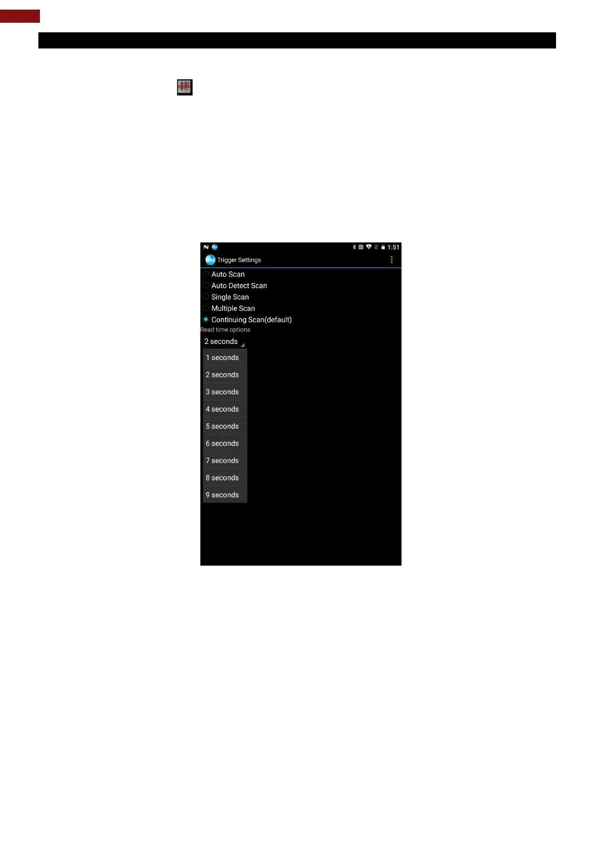 • Continuing Scan (default) – After pressing the trigger button Barcode Reader can scan and
