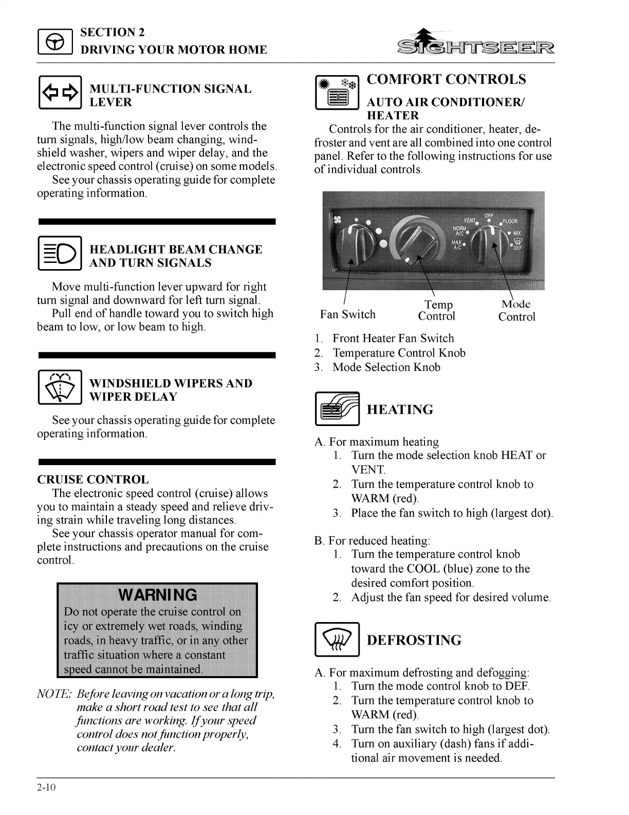 Winnebago 2002 Sightseer - Auxiliary Battery (Aux. Batt) Switch; Beverage Tray - Storage Space; Coach Leveling Systems