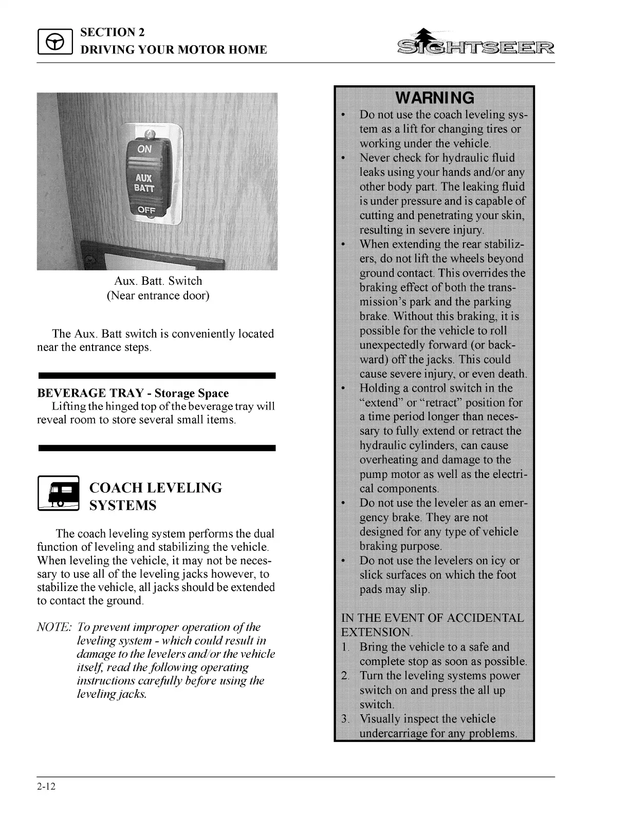 Winnebago 2002 Sightseer - Stabilizing; Retracting the Levelers