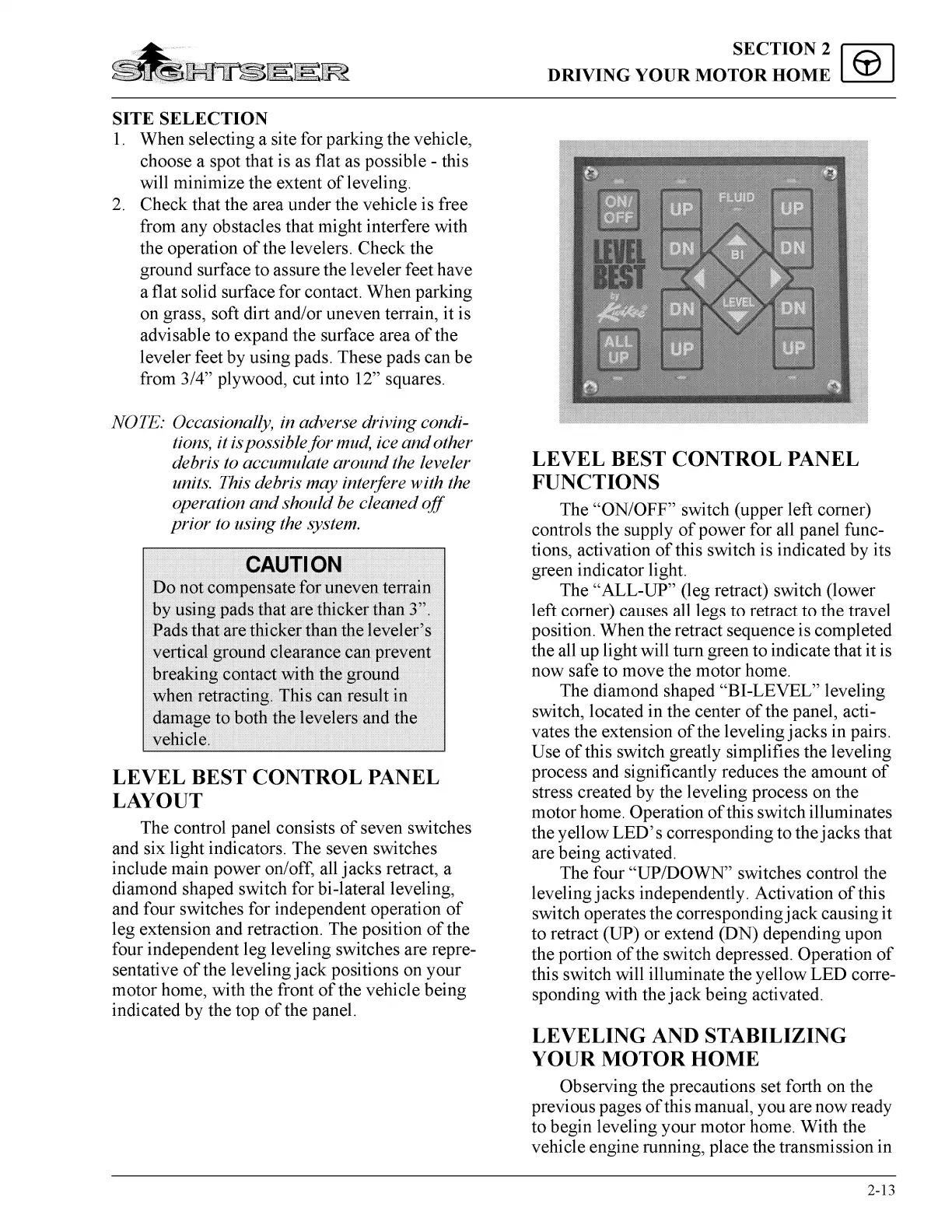 Winnebago 2002 Sightseer - Care and Maintenance; Troubleshooting Guide; Slideout Room