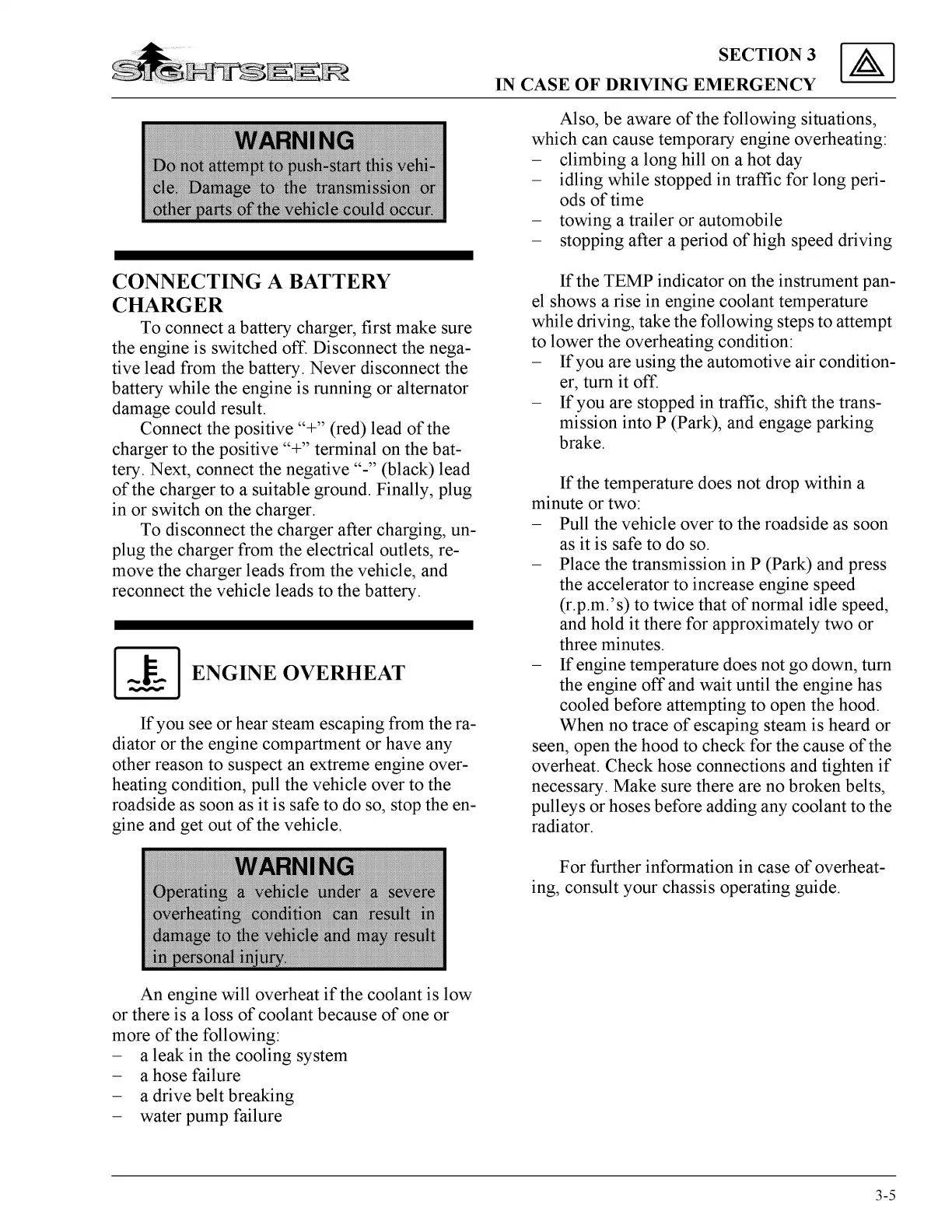Winnebago 2002 Sightseer - Car or Trailer Towing; Roof Loading; Pre-Travel Checklist; Equipping for Travel