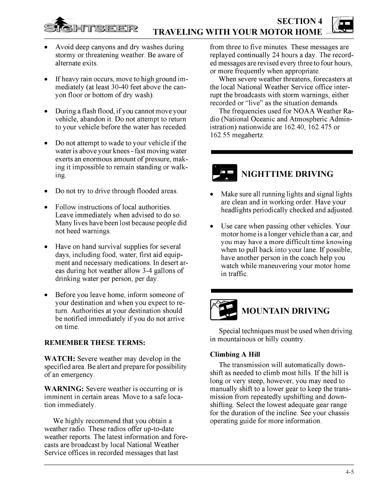 Winnebago 2002 Sightseer - Section 5 LP Gas System; LP Gas Supply; Safe Use of the LP Gas System