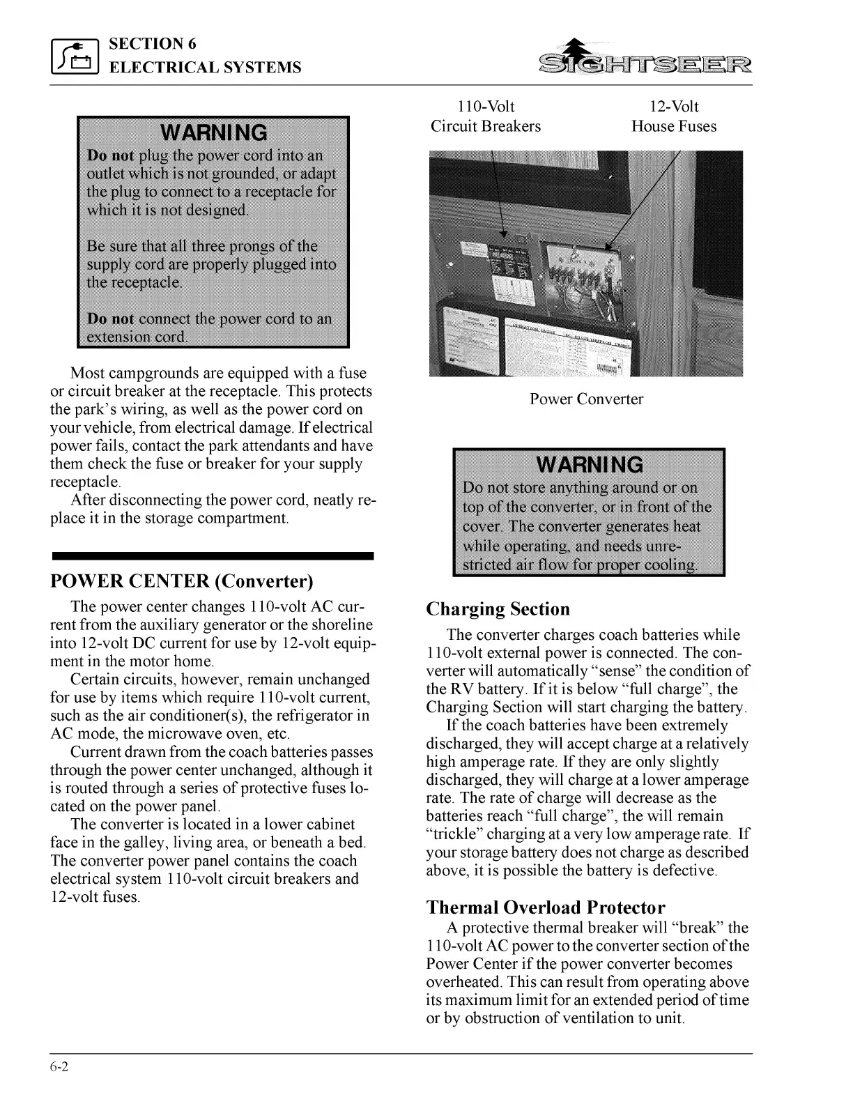 Winnebago 2002 Sightseer - Power Center; Charging Section; Thermal Overload Protector