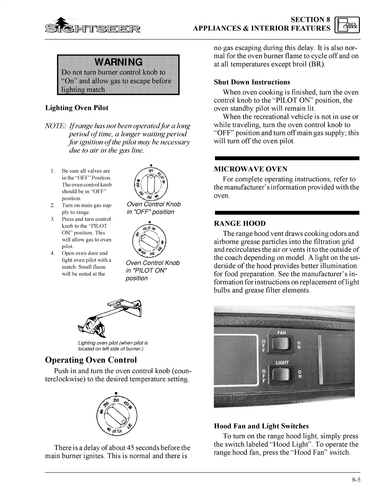 Winnebago 2002 Sightseer - Hood Fan and Light Switches