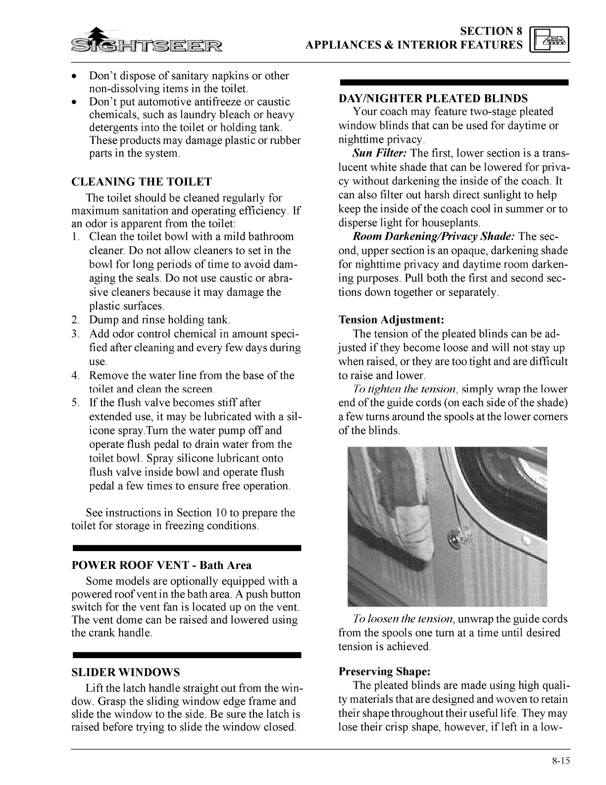 Winnebago 2002 Sightseer - Cleaning the Toilet; Power Roof Vent - Bath Area; Slider Windows