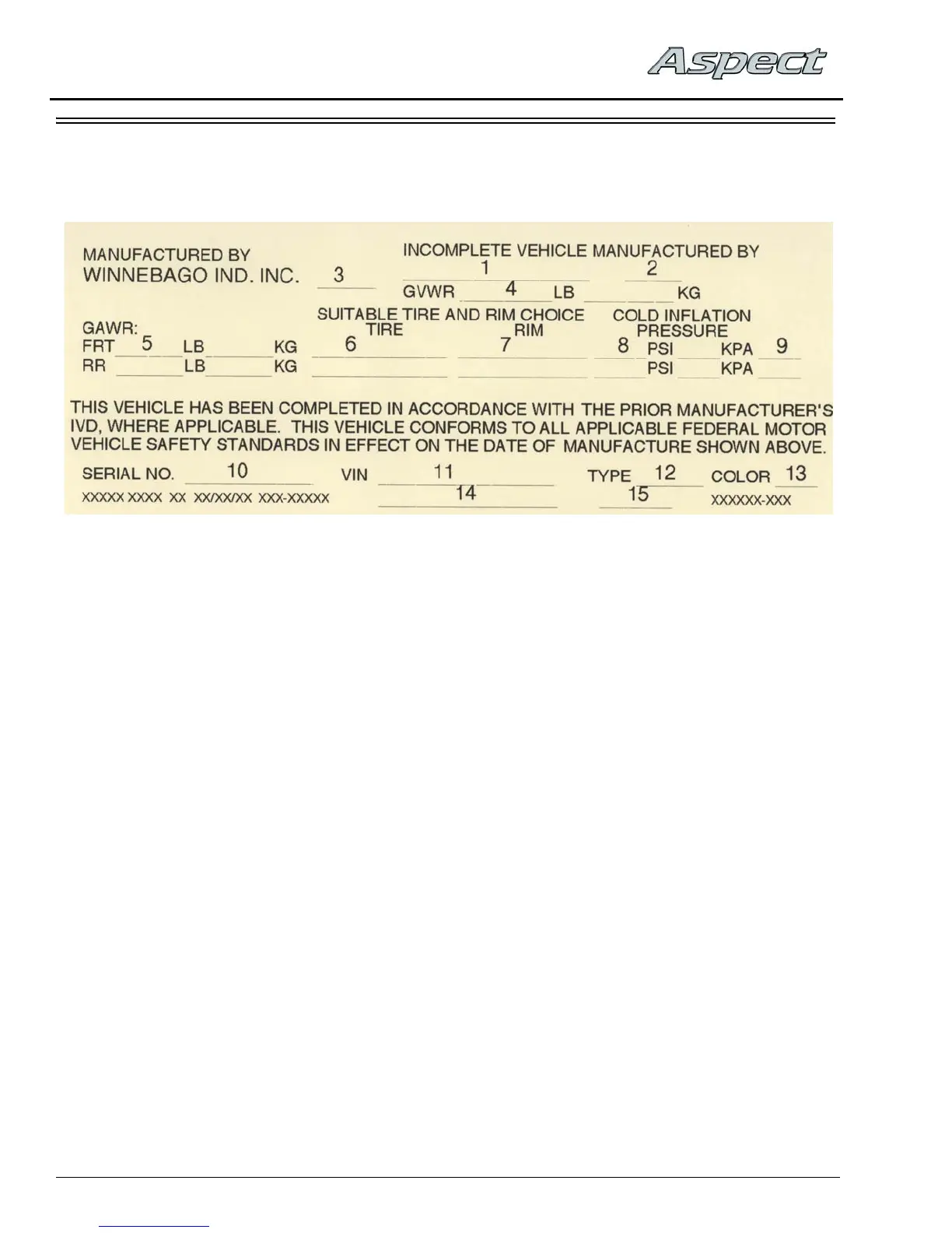 3. Month and year of manufacture at Winnebago