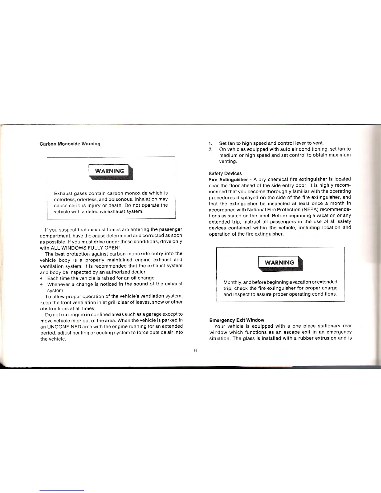 Winnebago Centauri - Carbon Monoxide Warning; Safety Devices; Emergency Exit Window