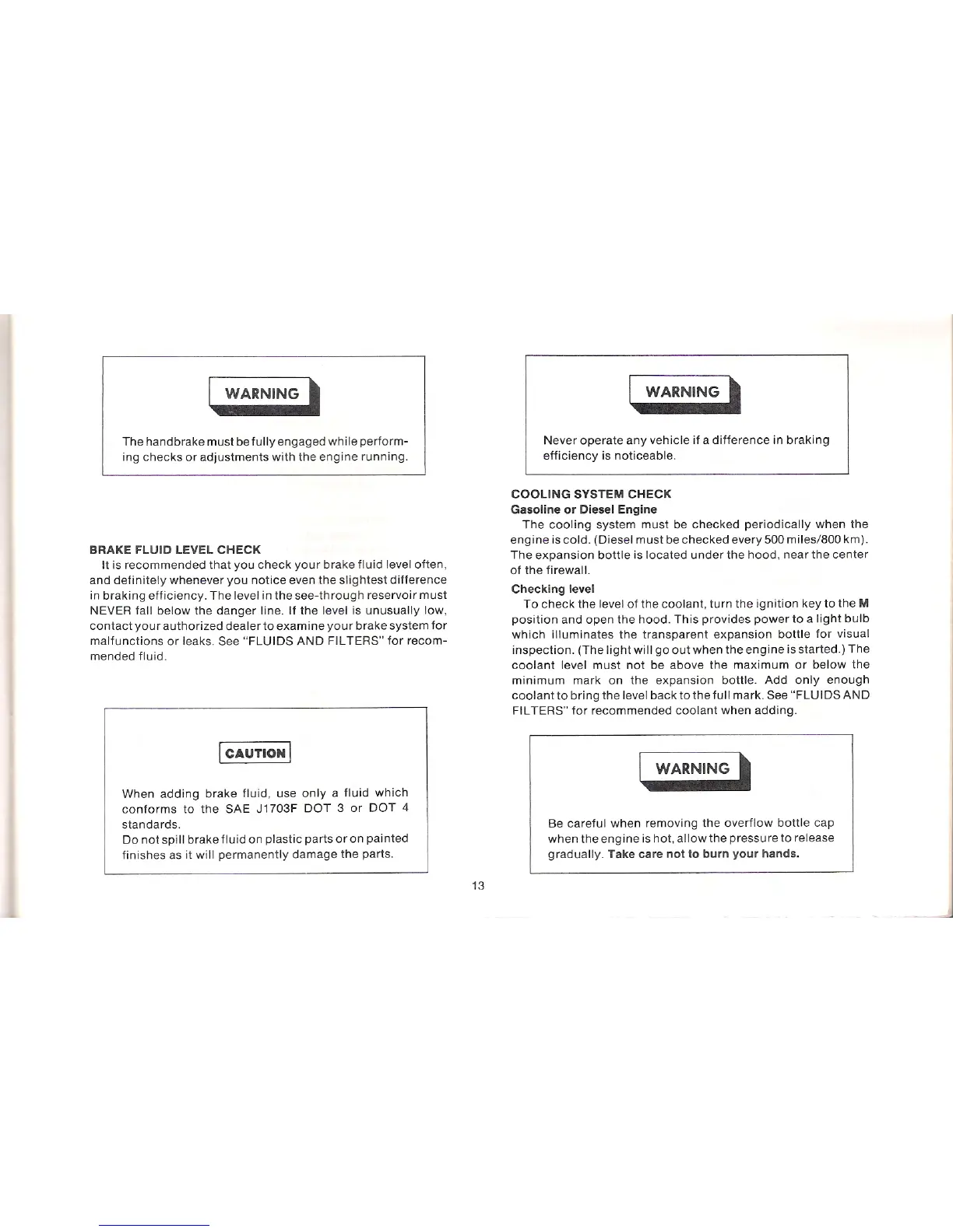 Winnebago Centauri - Brake Fluid Level Check; Cooling System Check; Gasoline or Diesel Engine; Checking Level