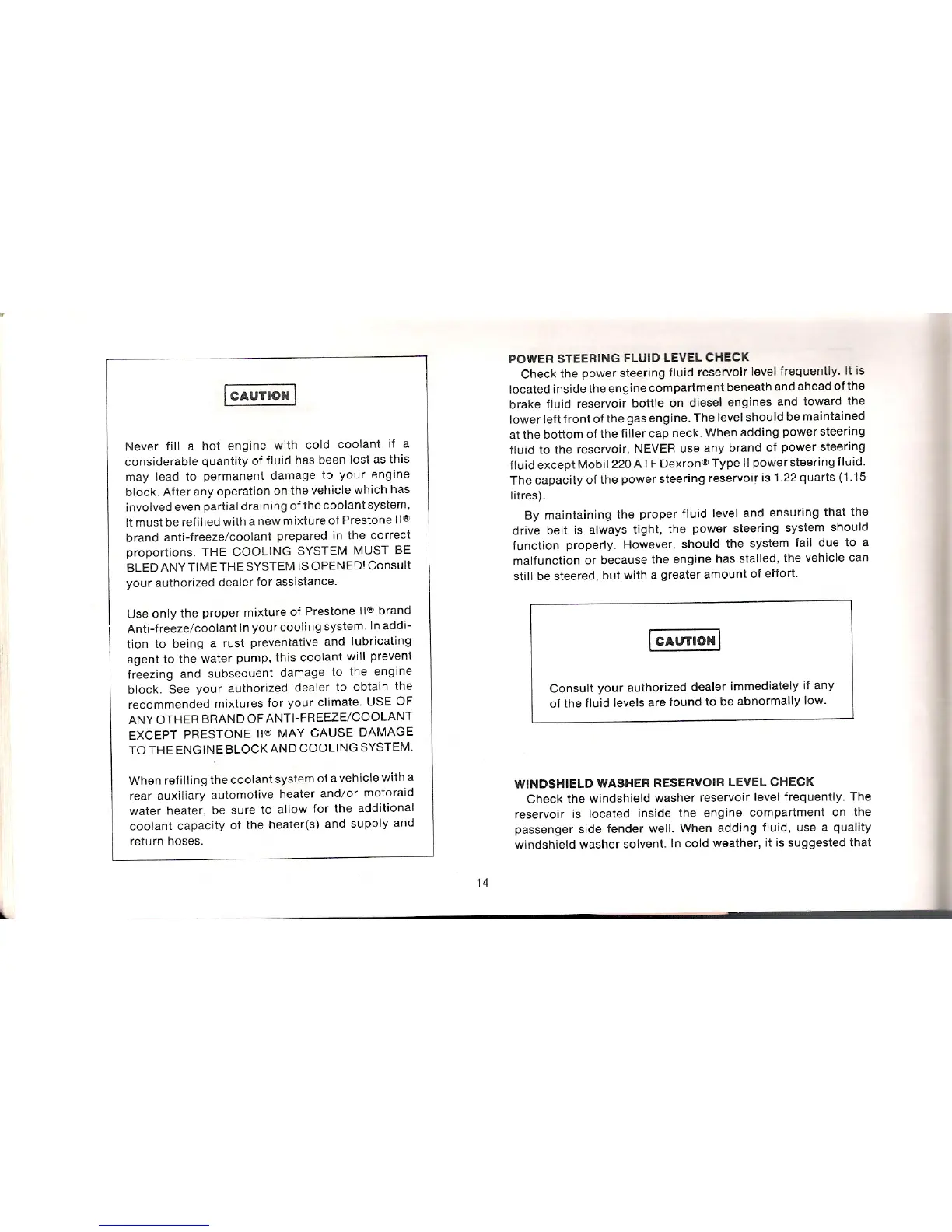 Winnebago Centauri - Power Steering Fluid Level Check; Windshield Washer Reservoir Level Check