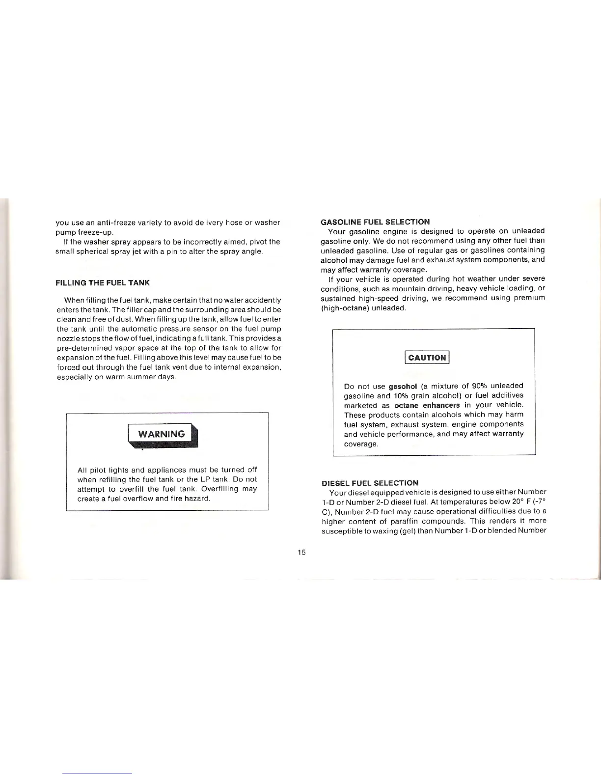 Winnebago Centauri - Filling the Fuel Tank; Gasoline Fuel Selection; Diesel Fuel Selection