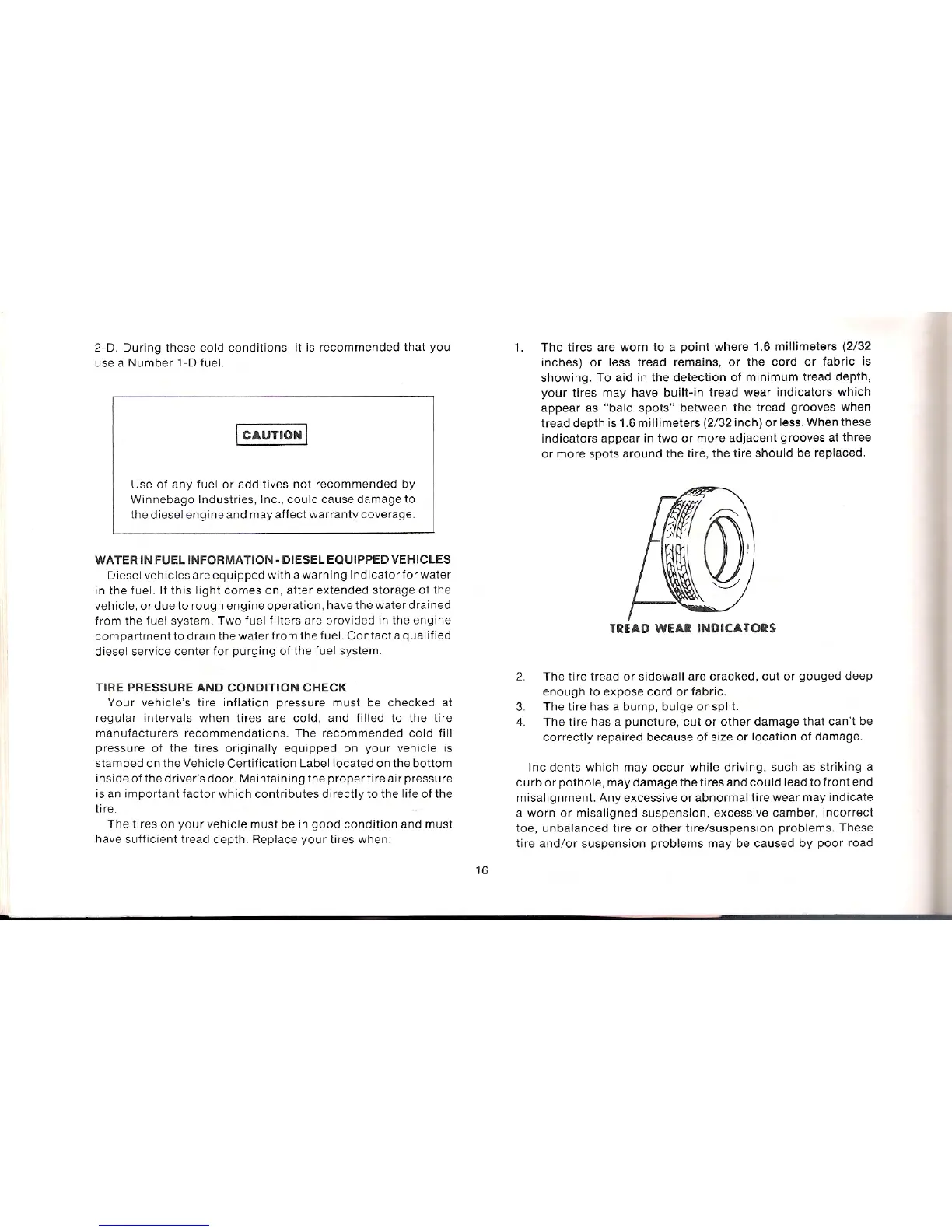 Winnebago Centauri - Water in Fuel Information (Diesel); Tire Pressure and Condition Check; Tread Wear Indicators
