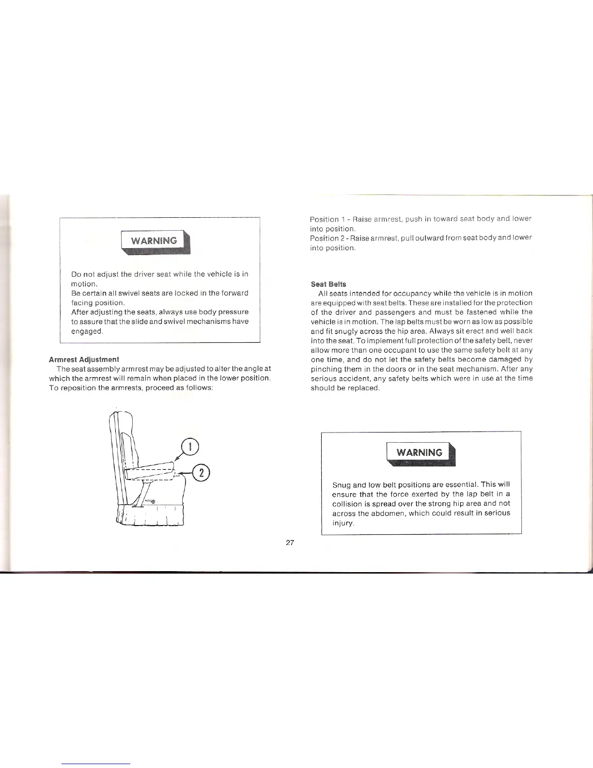 Winnebago Centauri - Armrest Adjustment; Seat Belts