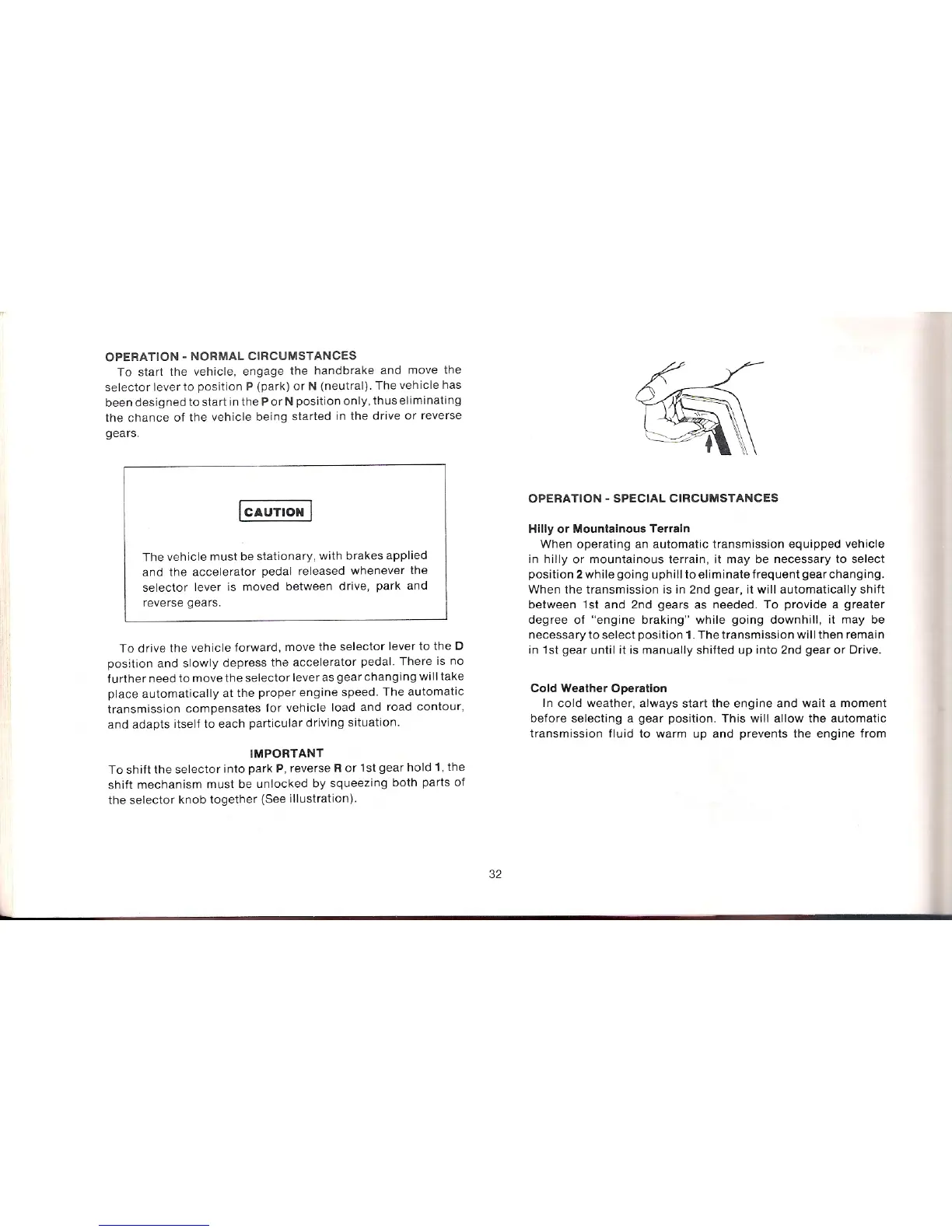 Winnebago Centauri - Operation - Normal Circumstances; Operation - Special Circumstances; Hilly or Mountainous Terrain; Cold Weather Operation