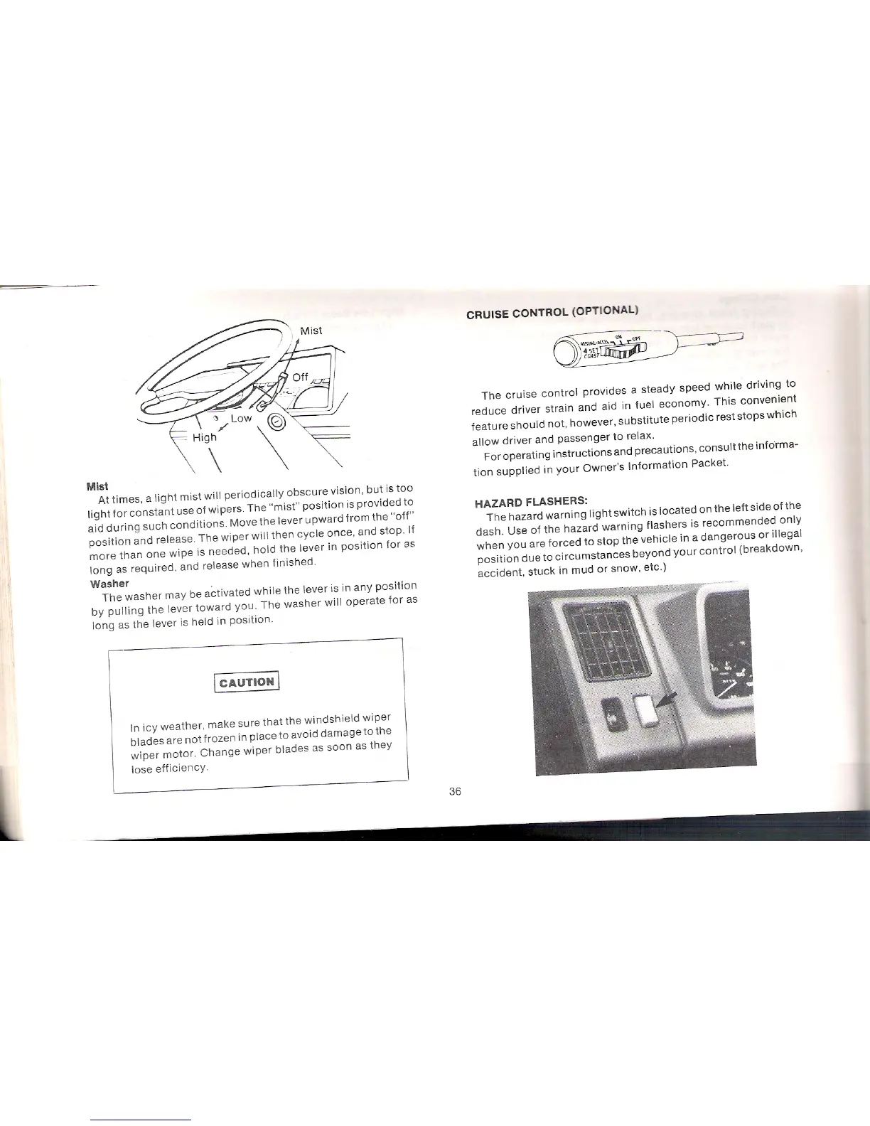 Winnebago Centauri - Cruise Control; Hazard Flashers; Mist; Washer
