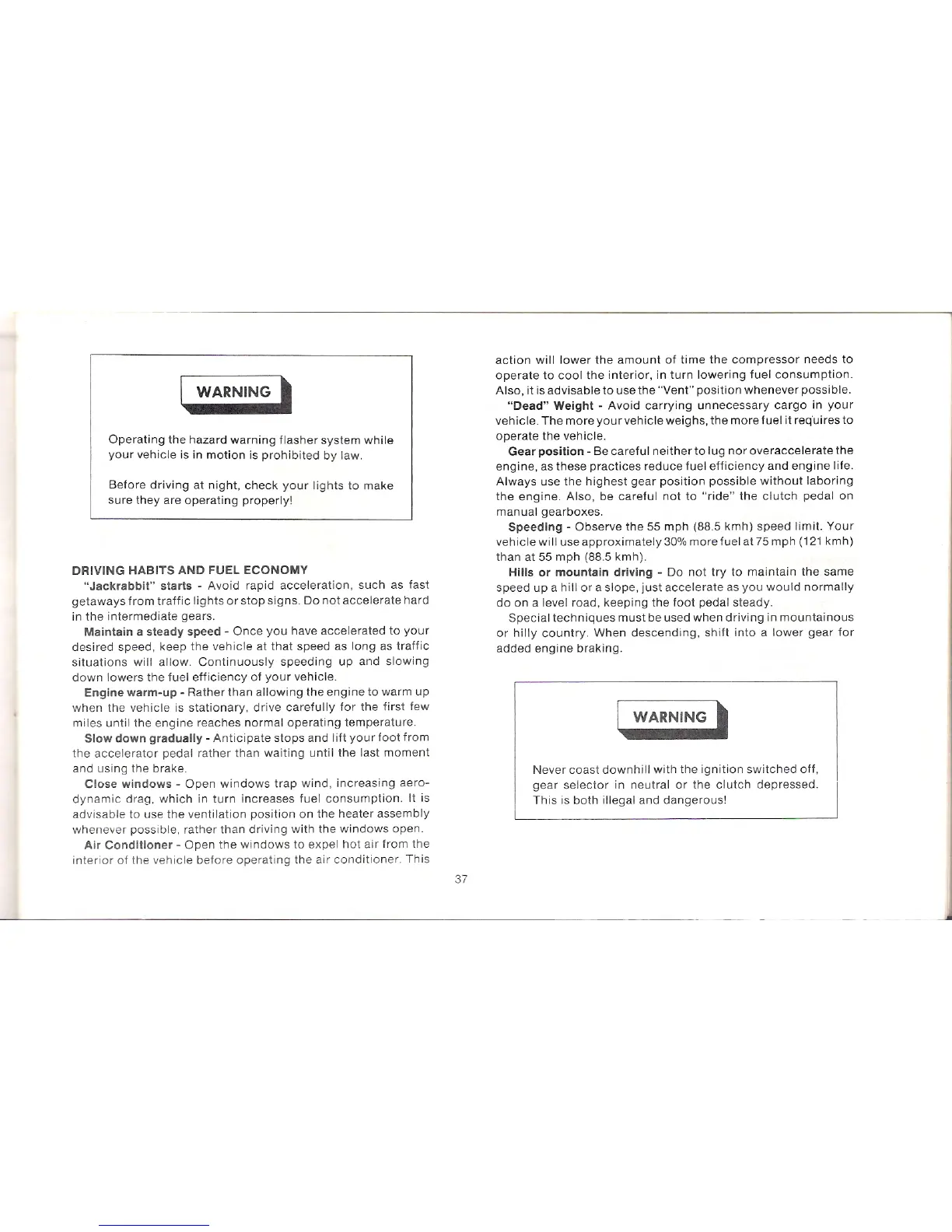 Winnebago Centauri - Driving Habits and Fuel Economy