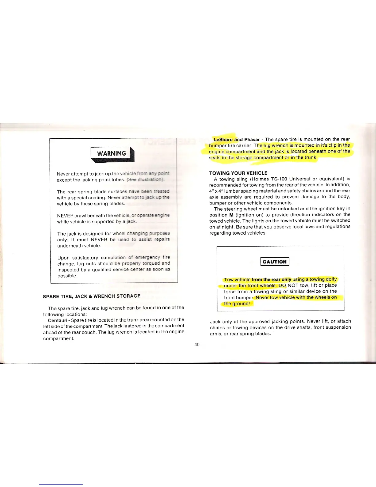 Winnebago Centauri - Spare Tire, Jack and Wrench Storage; Towing Your Vehicle