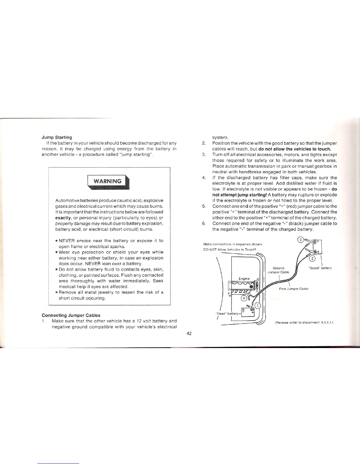 Winnebago Centauri - Jump Starting; Connecting Jumper Cables
