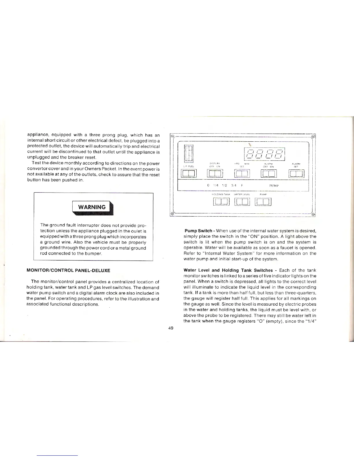 Winnebago Centauri - Monitor;Control Panel-Deluxe; Pump Switch; Water Level and Holding Tank Switches