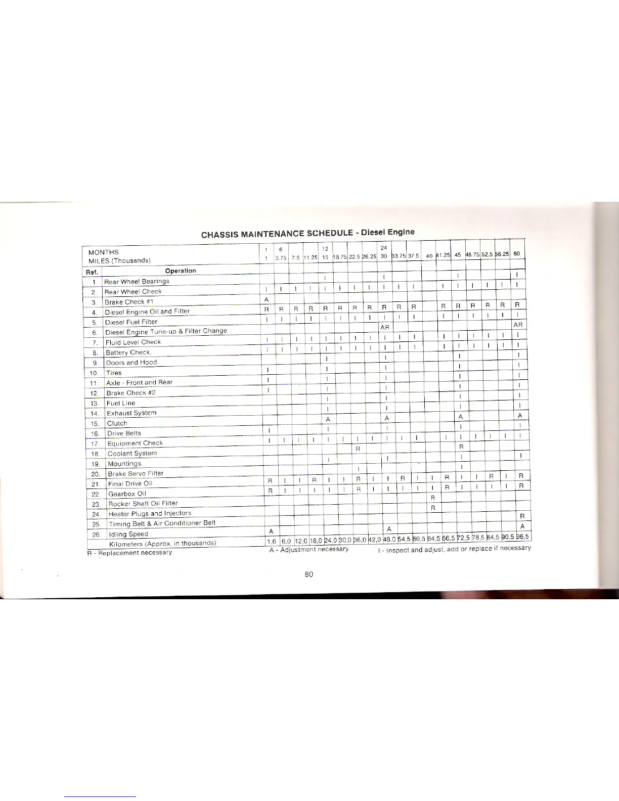 Winnebago Centauri - Chassis Maintenance Schedule - Diesel