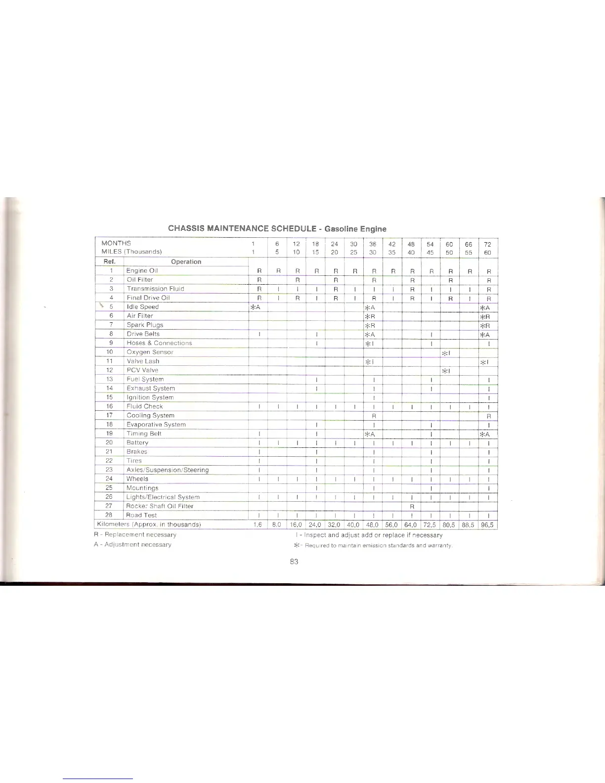 Winnebago Centauri - Chassis Maintenance Schedule - Gasoline