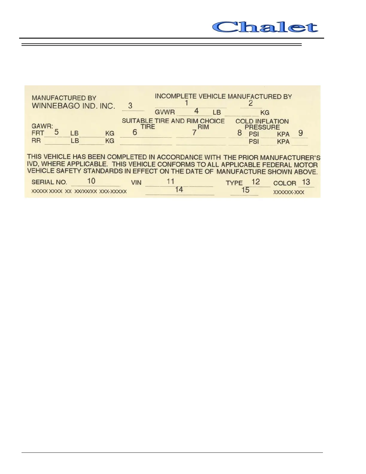 3. Month and year of manufacture at Winnebago