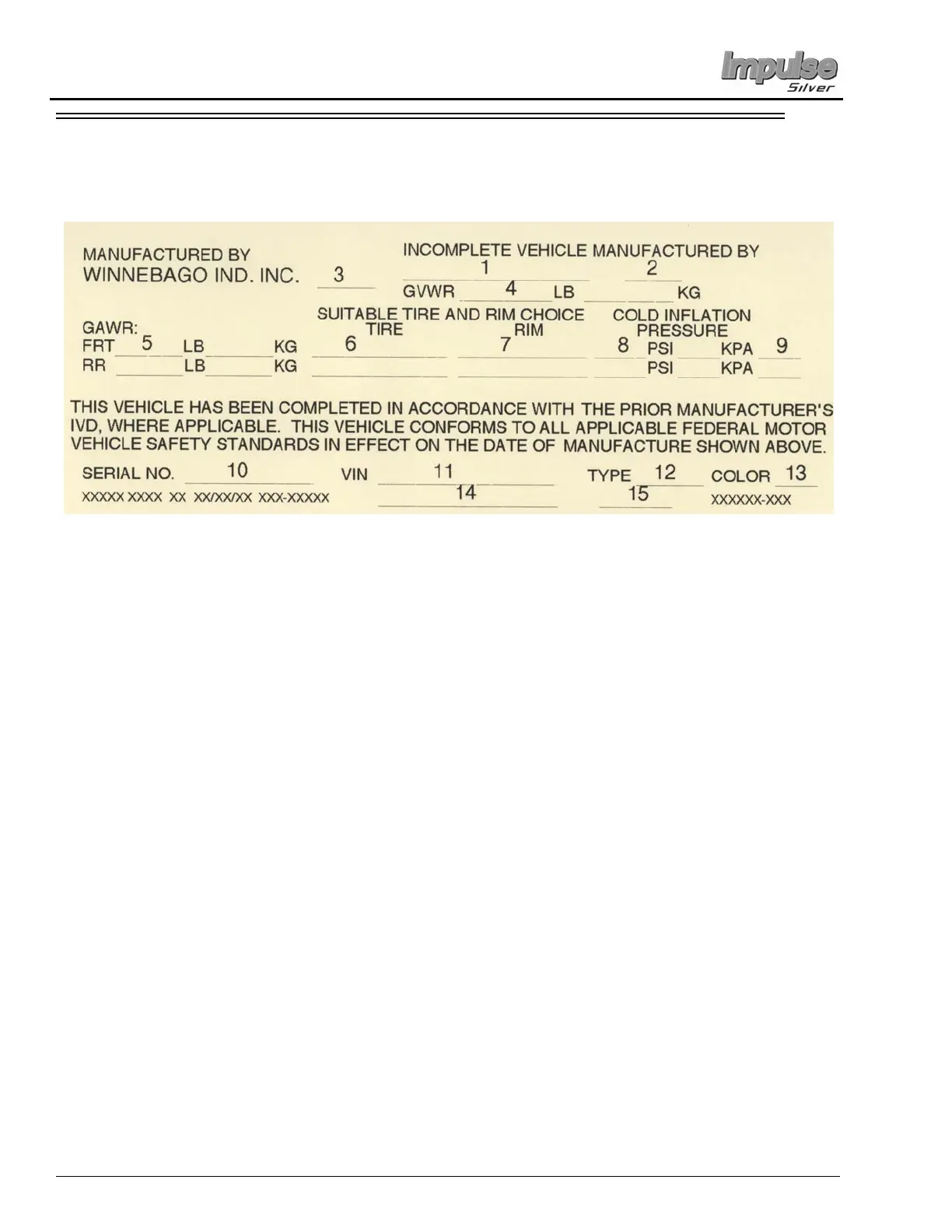 3. Month and year of manufacture at Winnebago