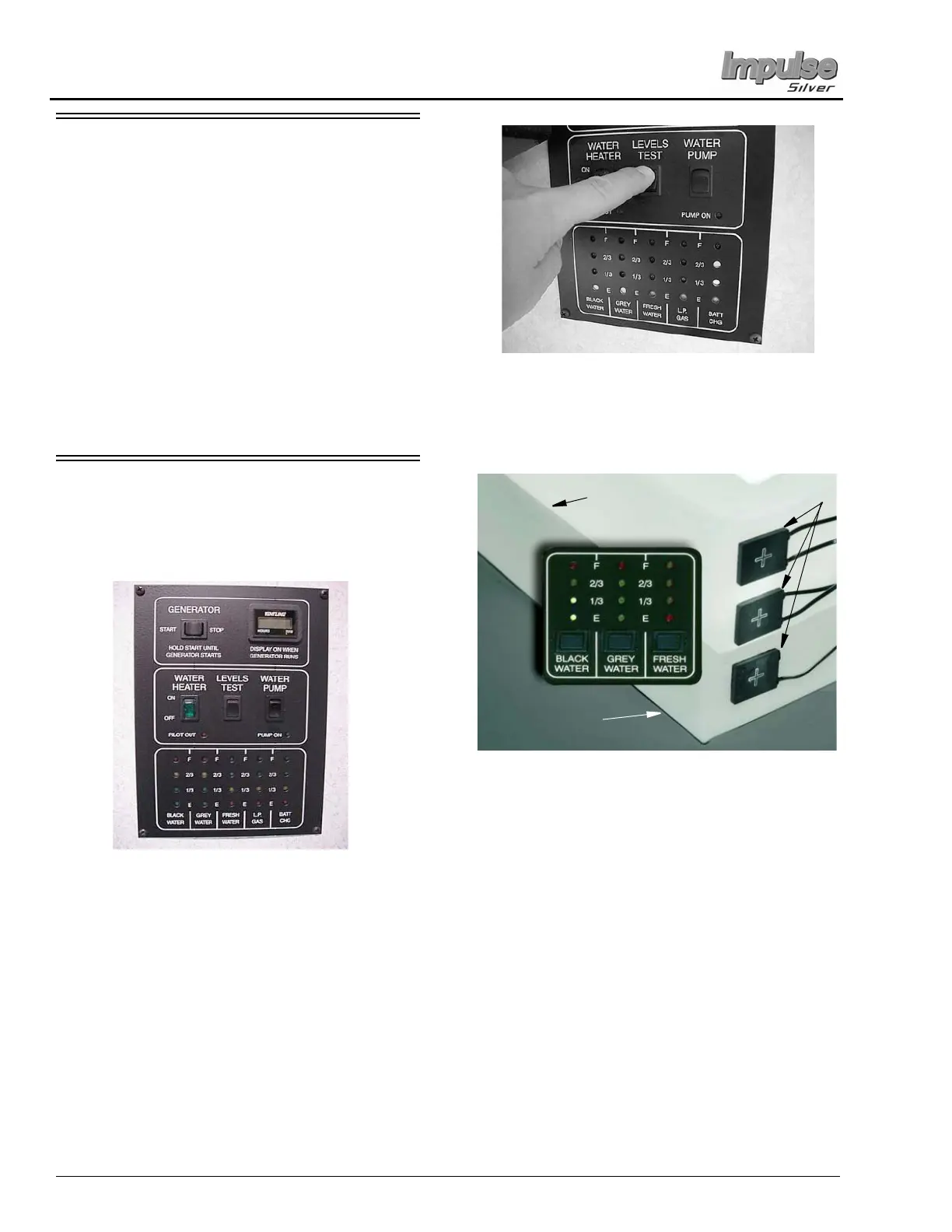 Winnebago Impulse Silver - Range Hood; Systems Monitor Panel; Tank Capacities