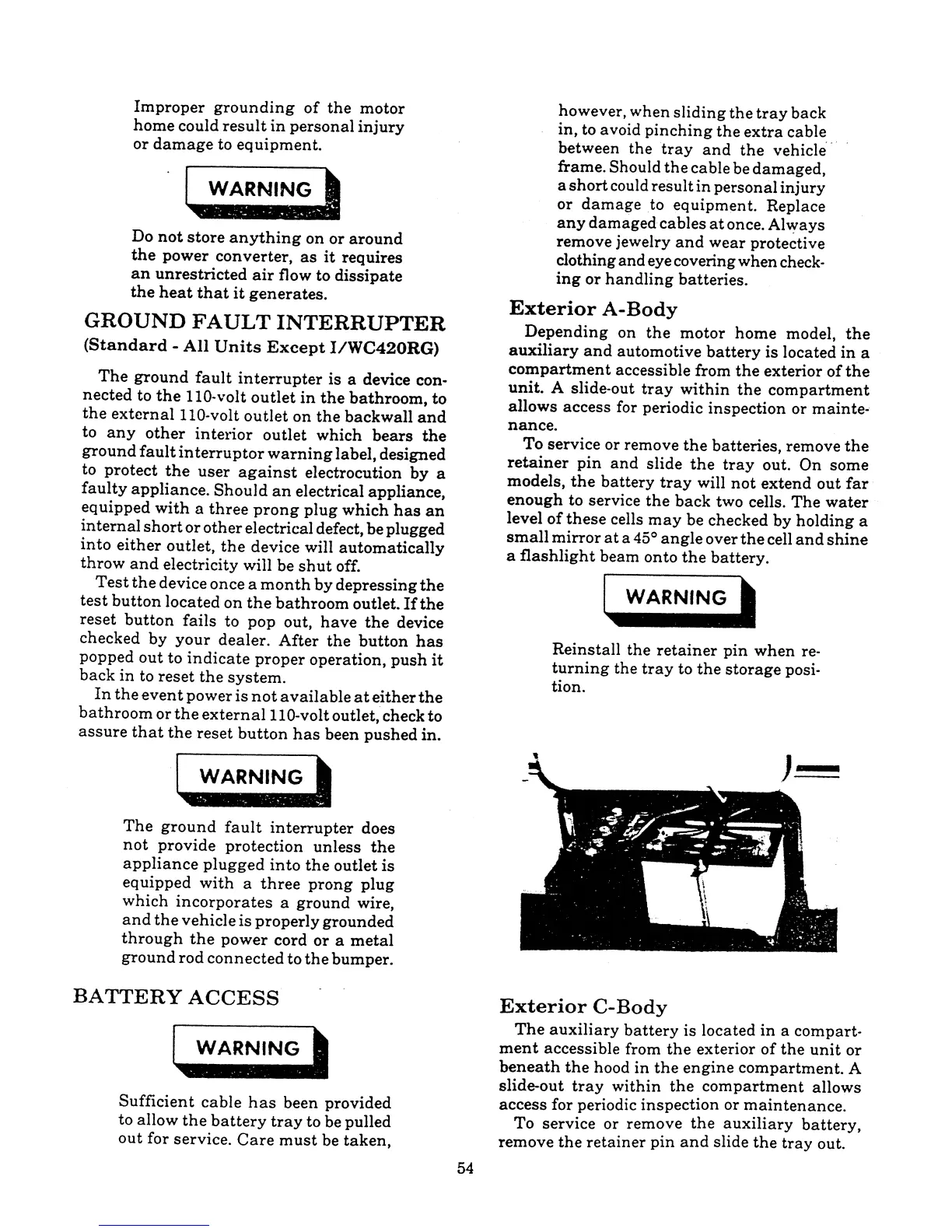 Winnebago Itasca - Ground Fault Interrupter; Battery Access
