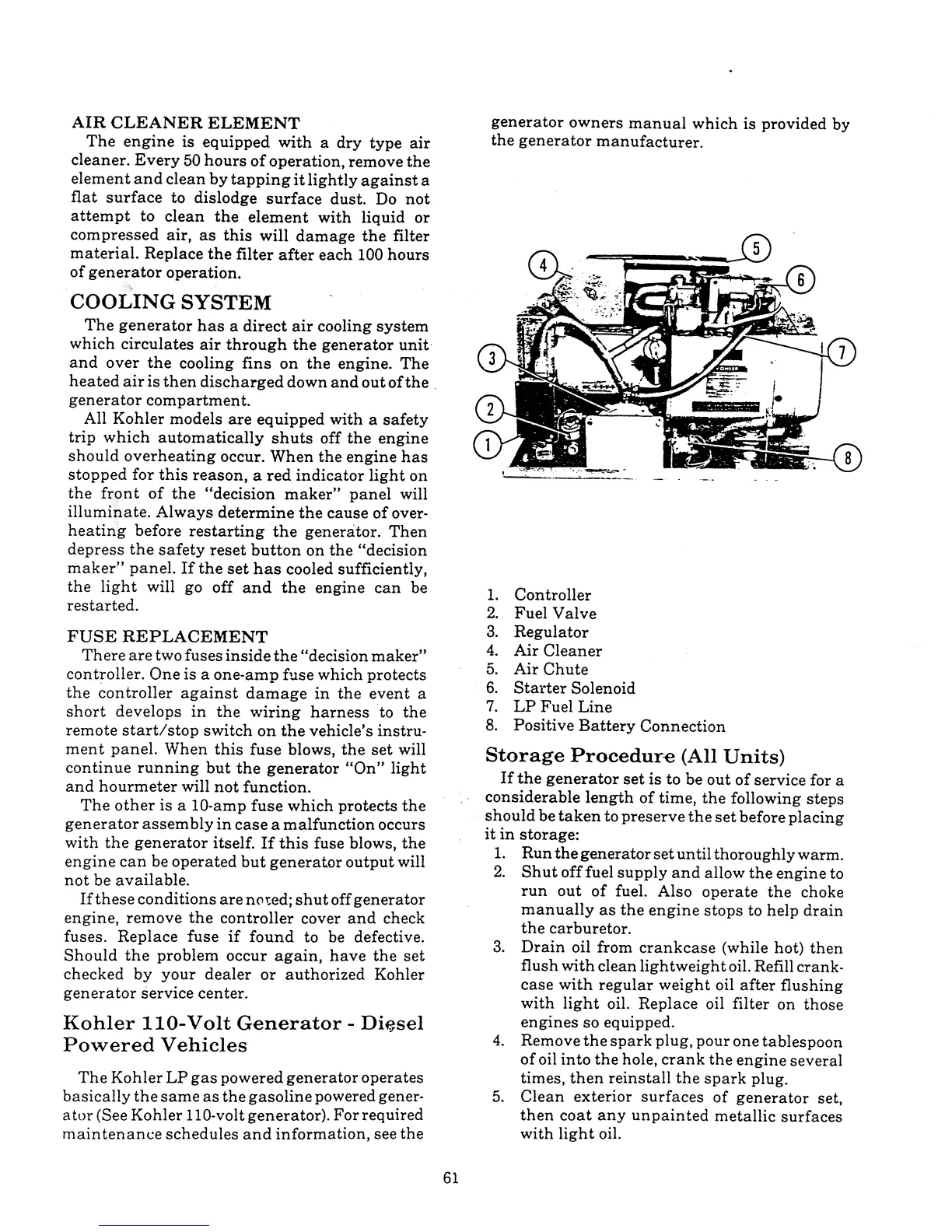 Winnebago Itasca - Cooling System; Kohler 110-Volt Generator - Diesel Powered Vehicles; Storage Procedure (All Units) (Generator)