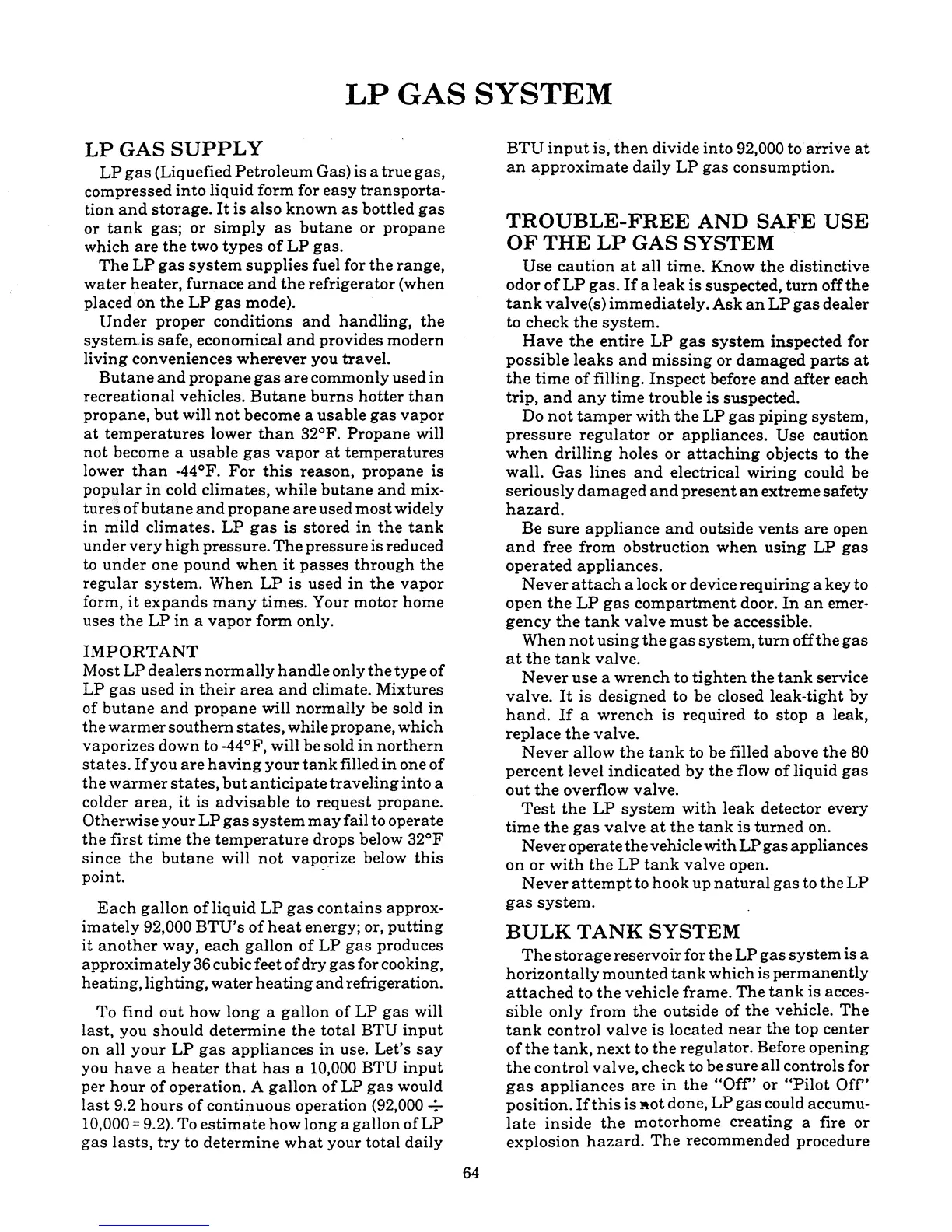 Winnebago Itasca - LP Gas System; LP Gas Supply; Bulk Tank System