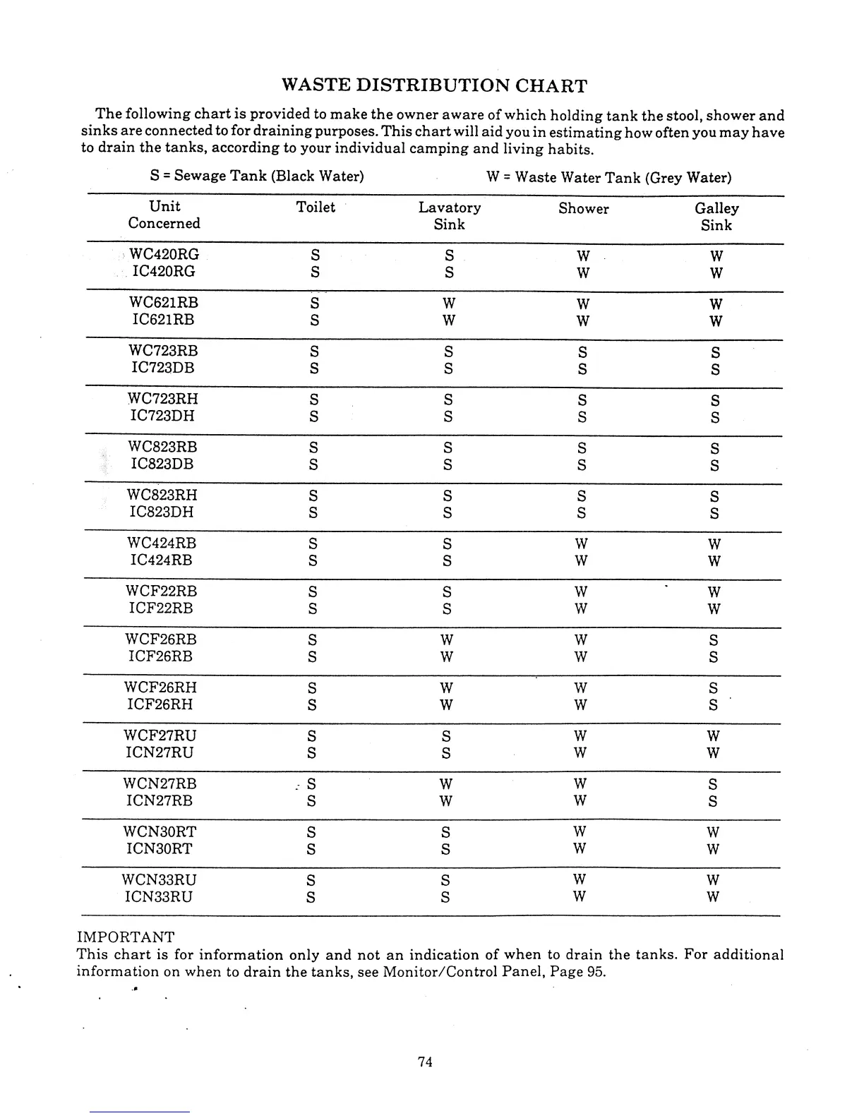 Winnebago Itasca - Waste Distribution Chart