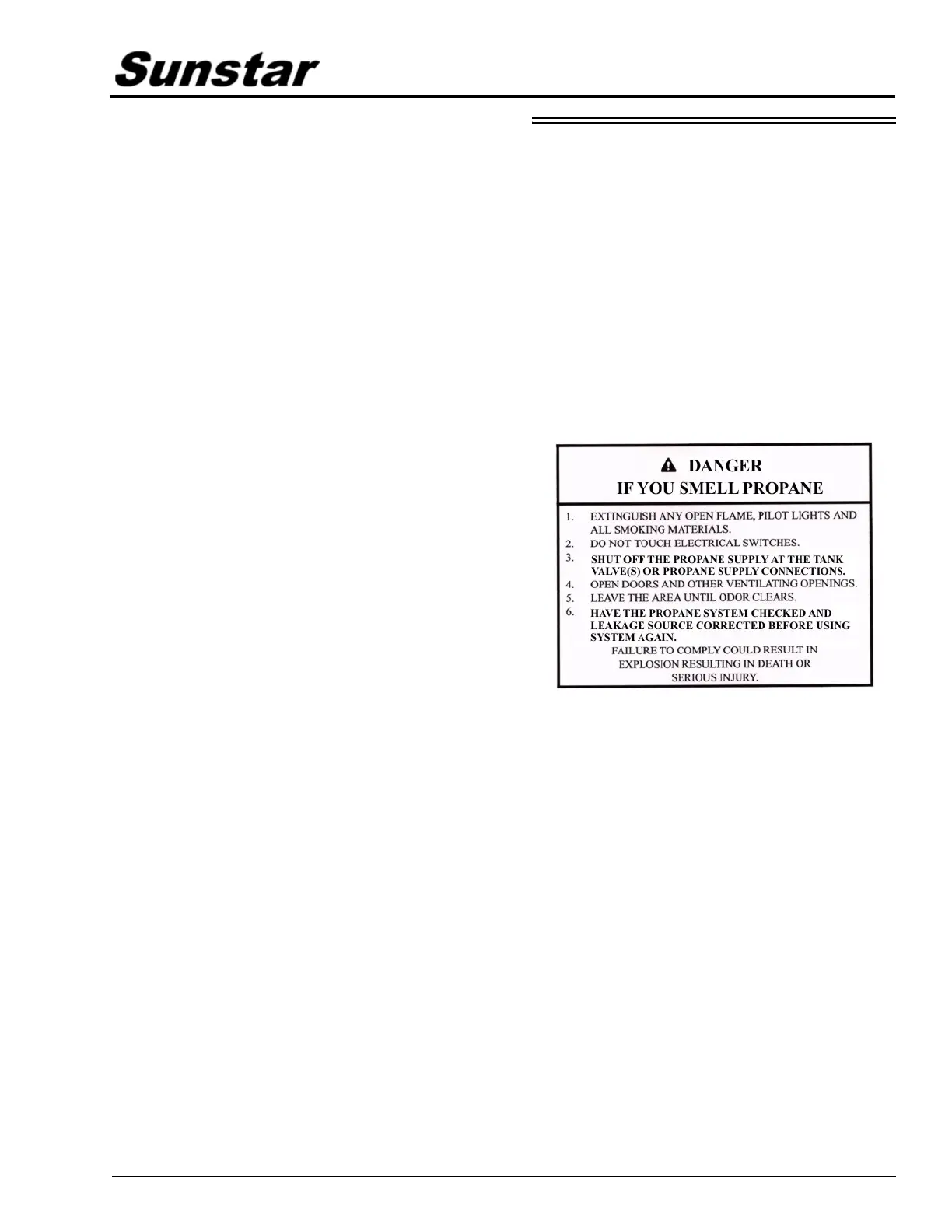 immediately. Have the propane gas system