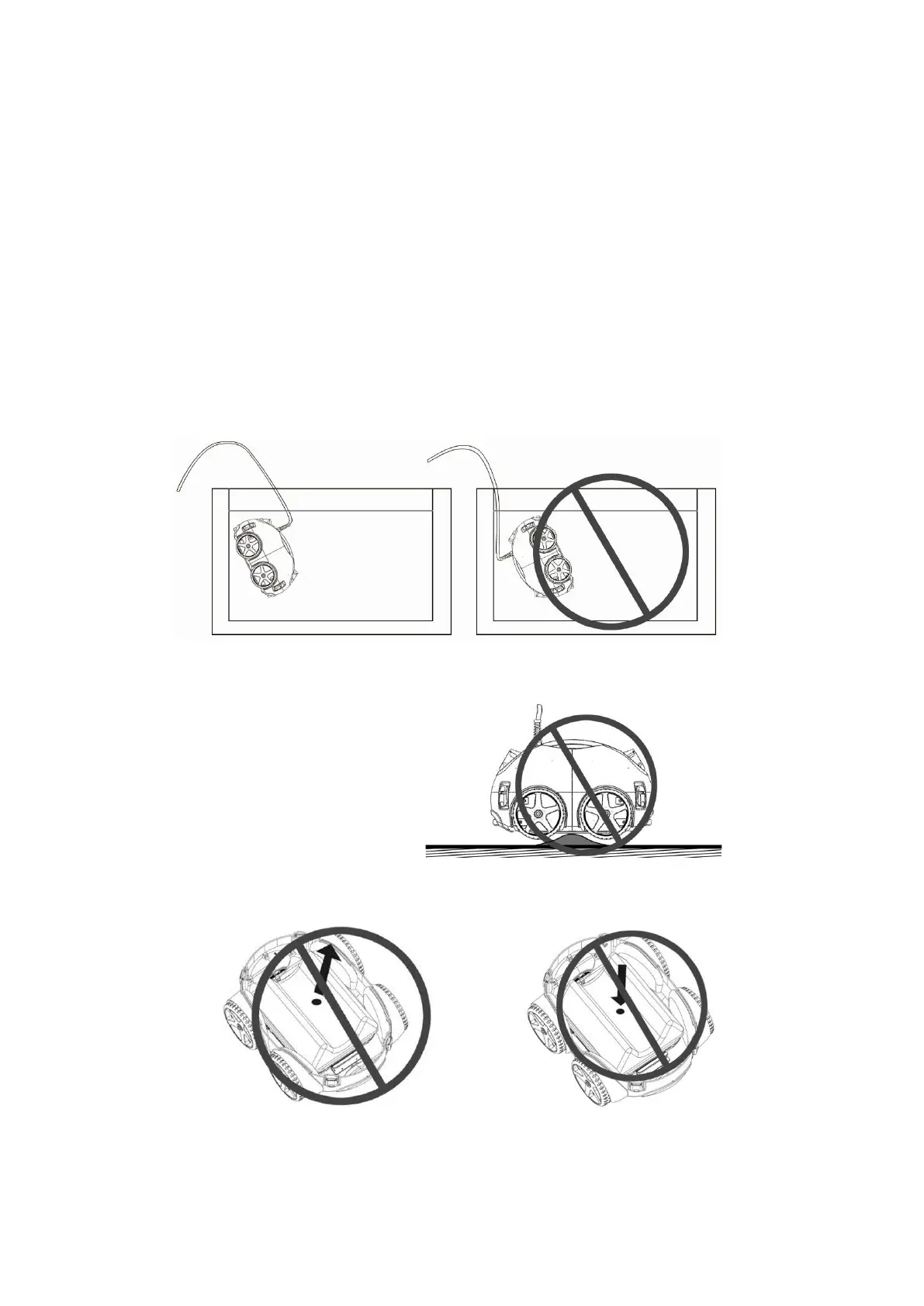 1. Putting into or lifting out from pool with the cleaner bottom toward the wall to avoid any