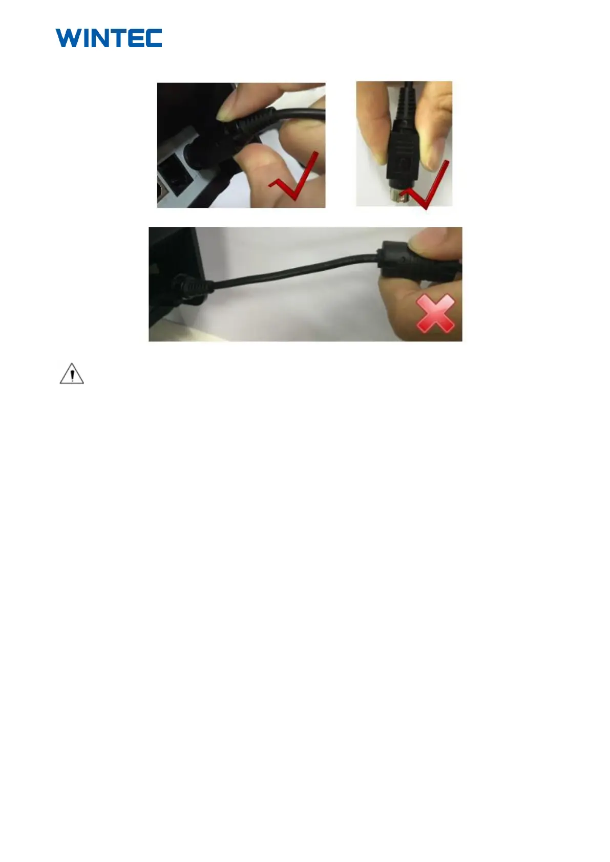 ► When disconnecting the AC adapter plug, handhold plug connector housing to avoid the pulling on the cable in