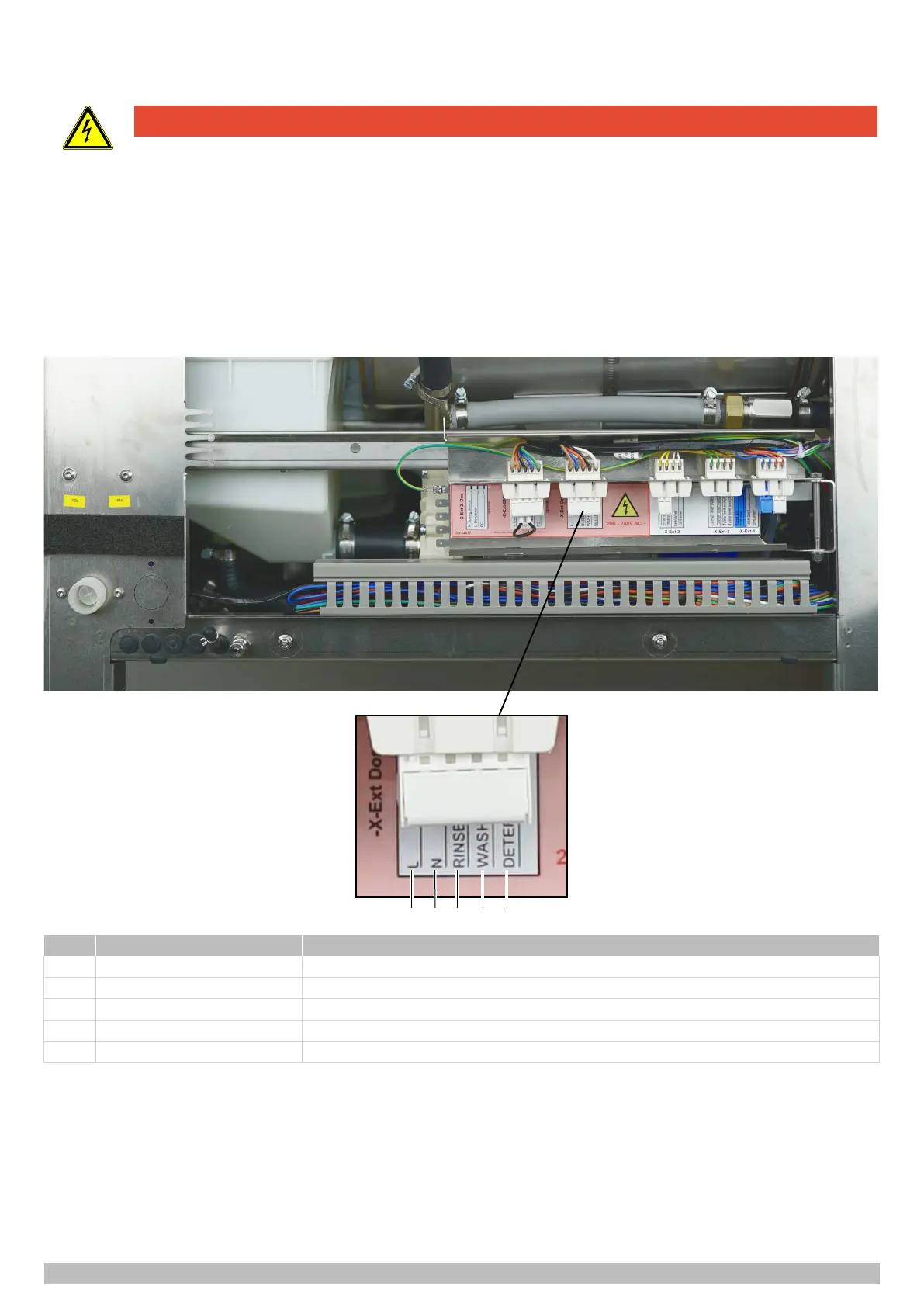 Note:Maximum current drain at the transfer strip: 0.5 A. Connect only external dosing devices with their own fuse protection.