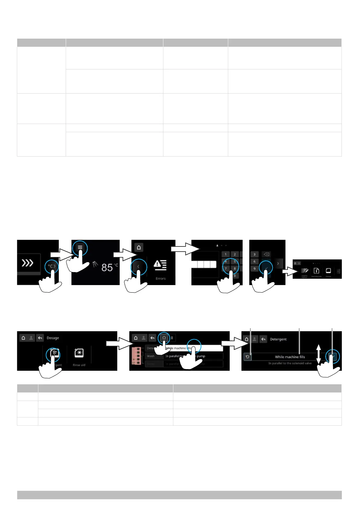 Ø Activate several washing programmes and check the warewasher and installed components for leaks.