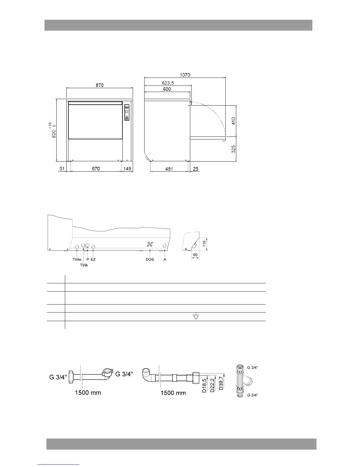 Drinking water connection (G ¾“, external thread) (only in case of machines