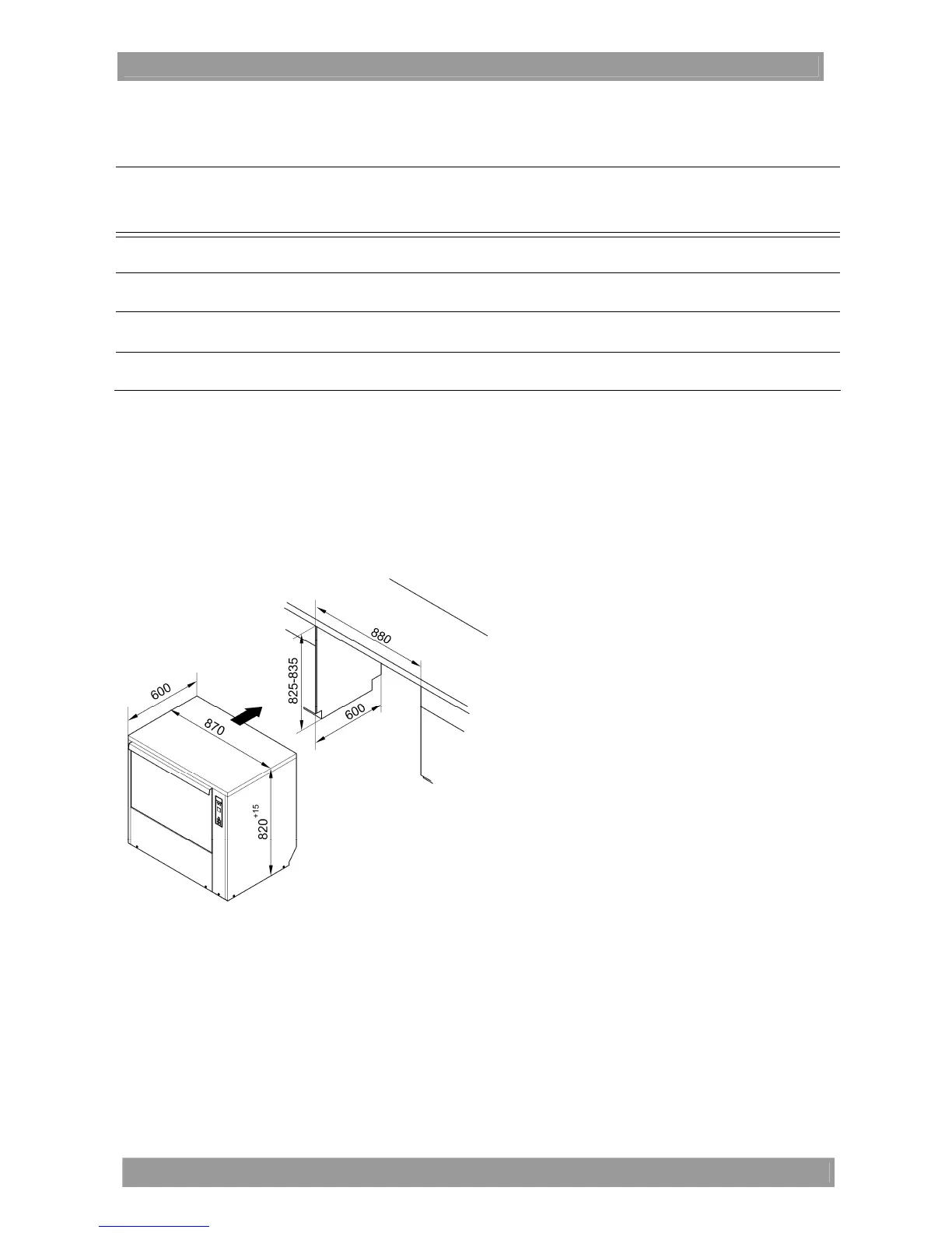 If the machine is to be installed into a counter, the following niche dimensions must be adhered to.