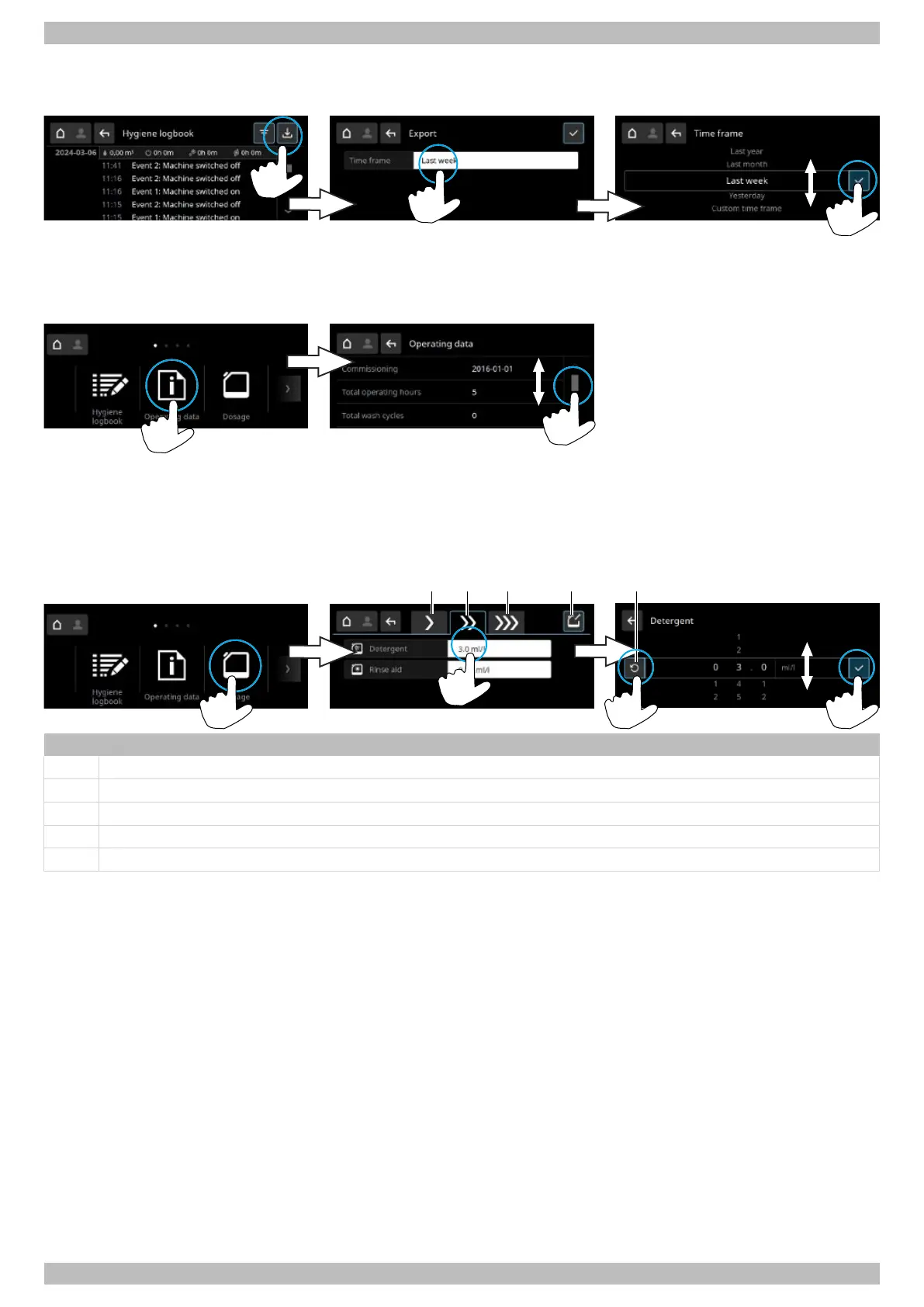 The dosing amounts for detergent, rinse aid and defoamer (depending on configuration) can be set separately for each
