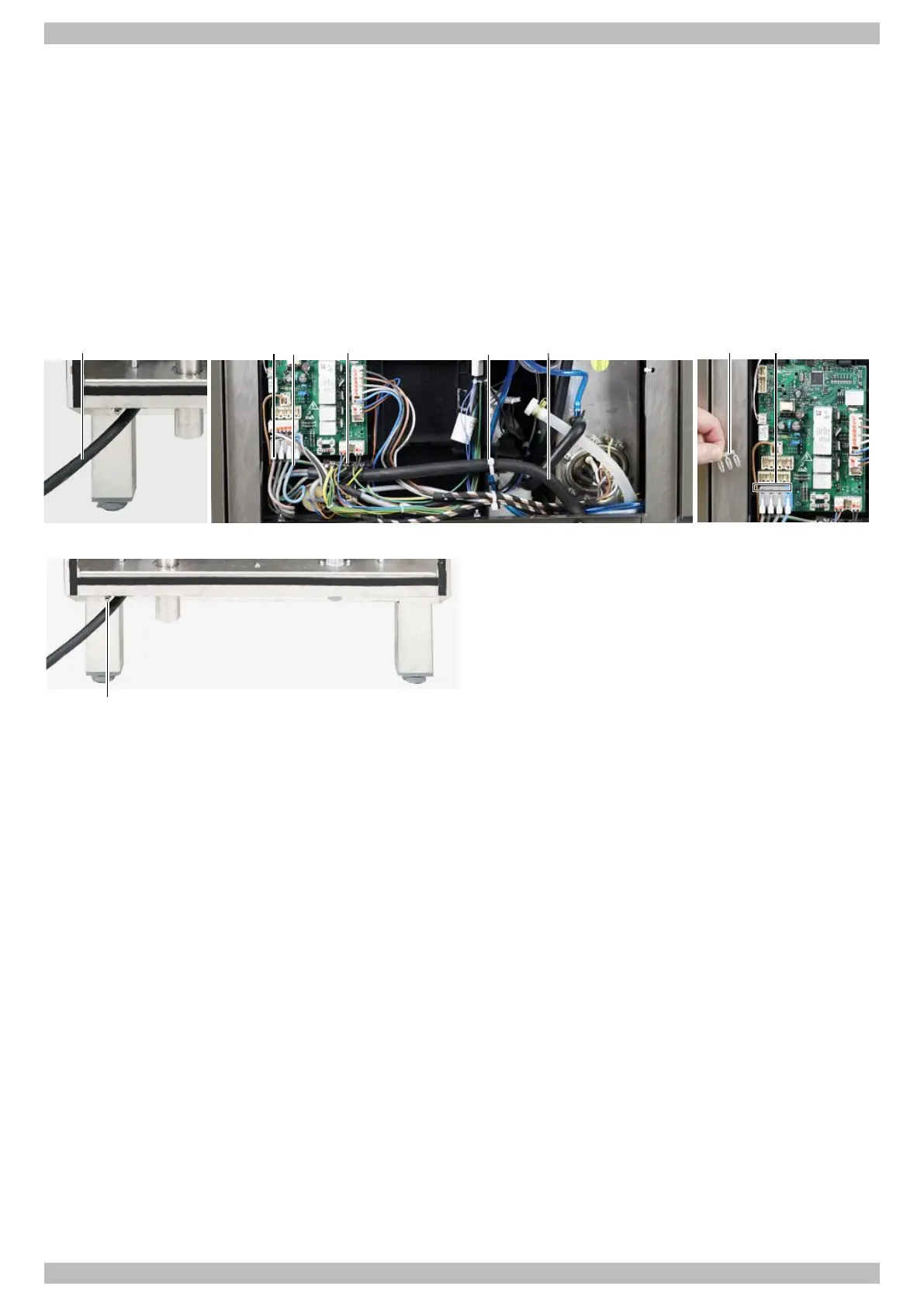 Ø Fasten the mains cable to the strain relief on the mounting plate using a cable tie (5).