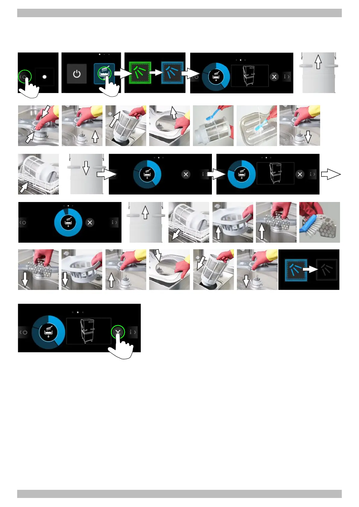 The self-cleaning programme is helpful in cleaning the interior of the warewasher at the end of the work day.
