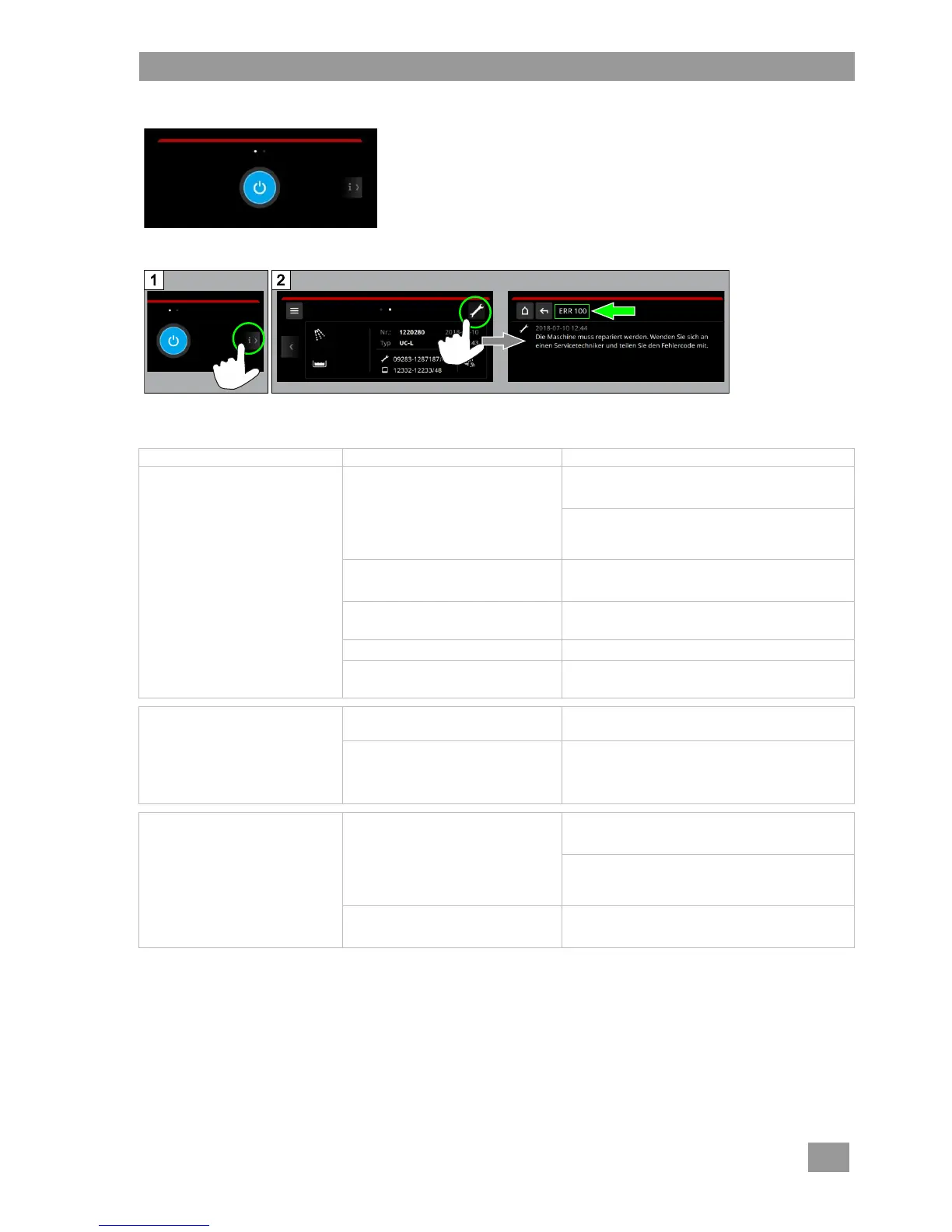 If a serious error is present, washing is no longer possible and a red bar appears at the top of the display: