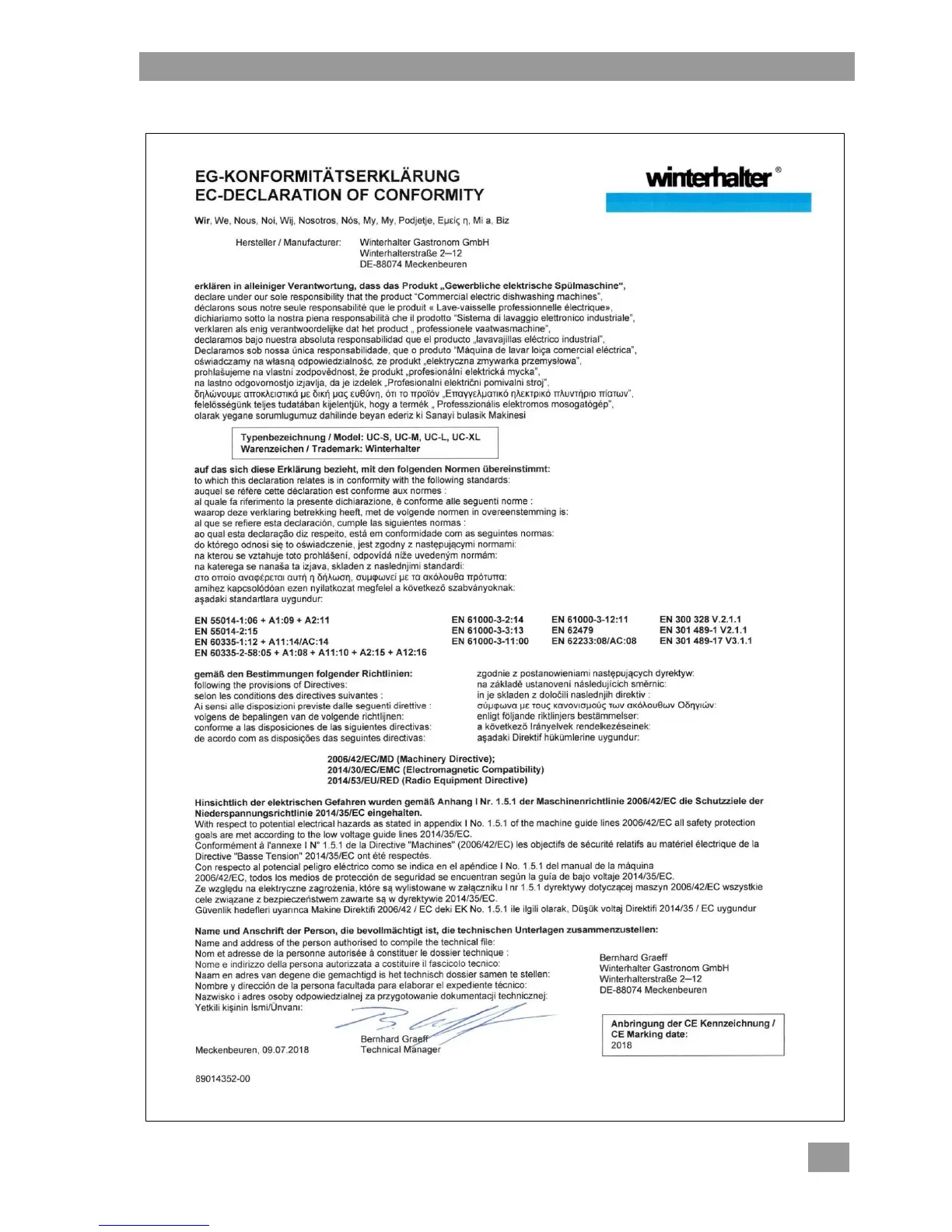 Other manuals for Winterhalter UC-L