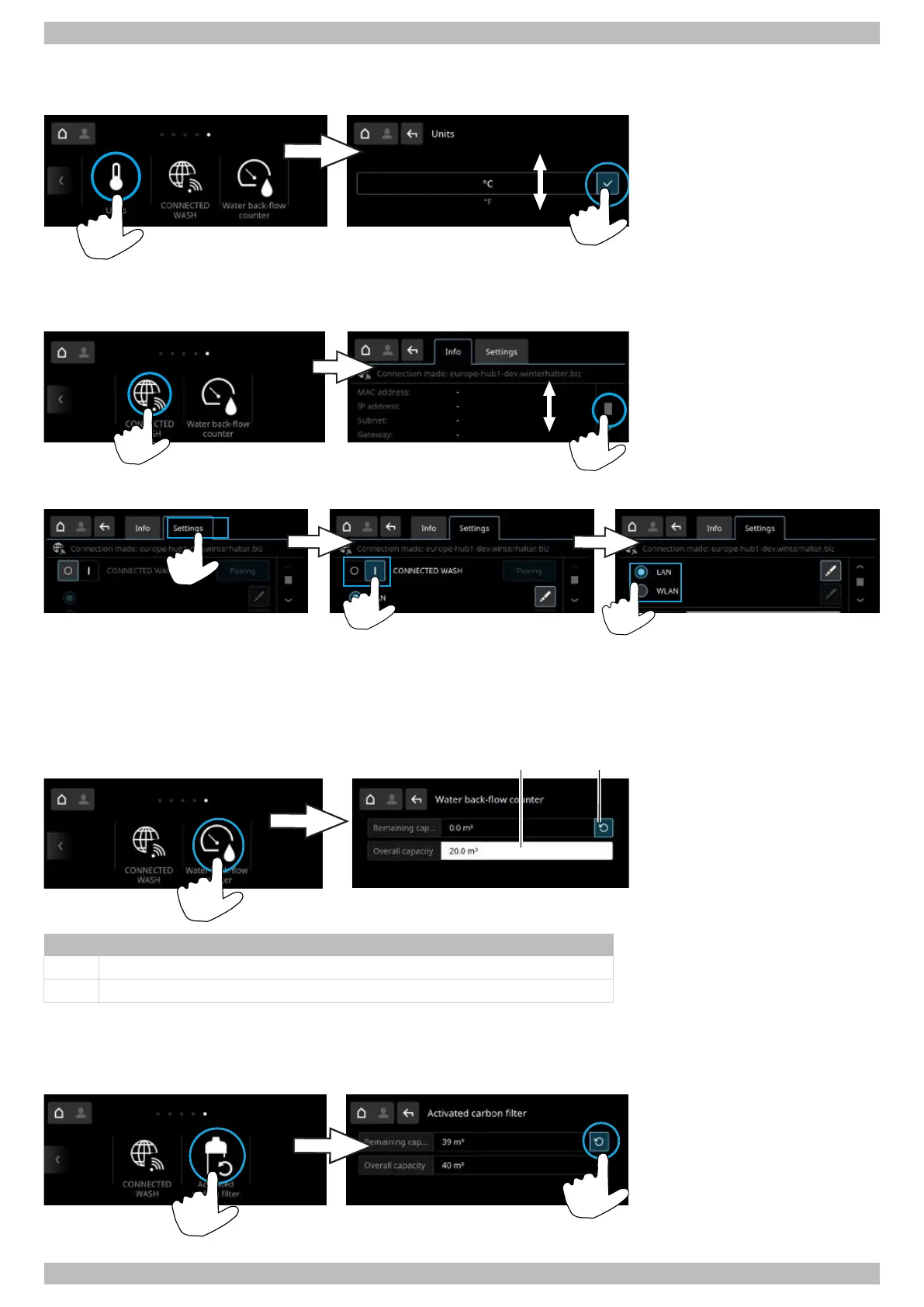 In this menu, the counter must be reset after replacing the activated carbon filter.