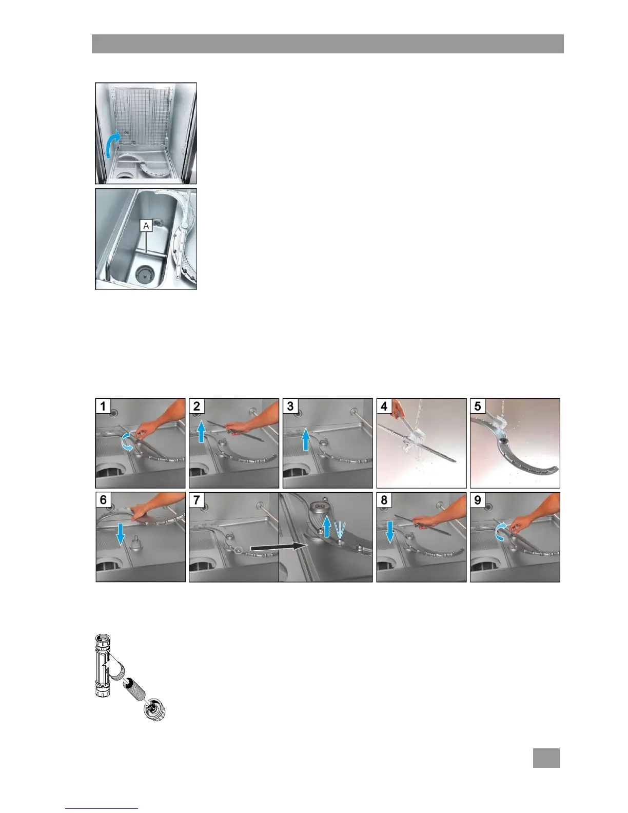 Repeat, in turn, for the upper wash arm.