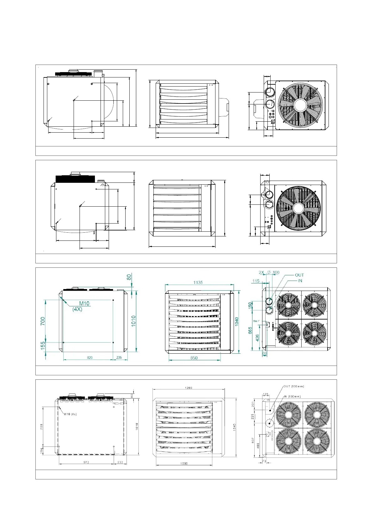 The dimensions of this air heater can be found in figures 1 through 3.